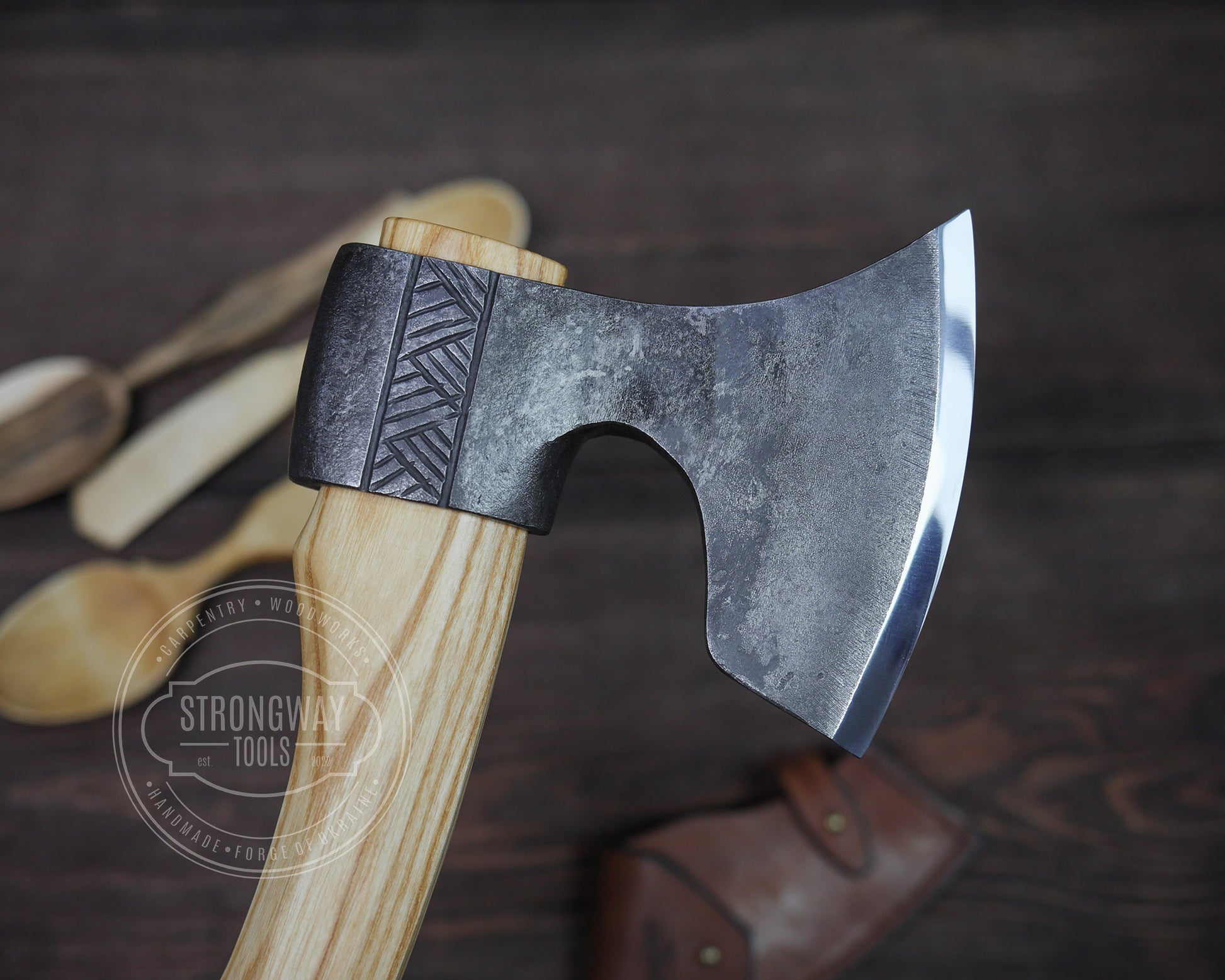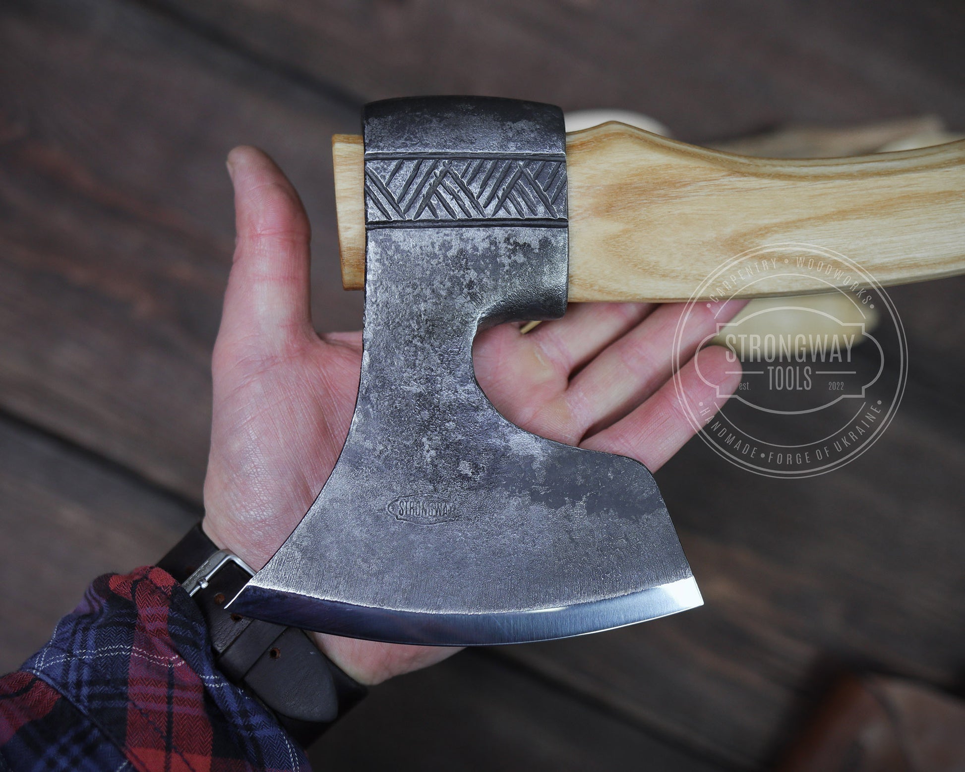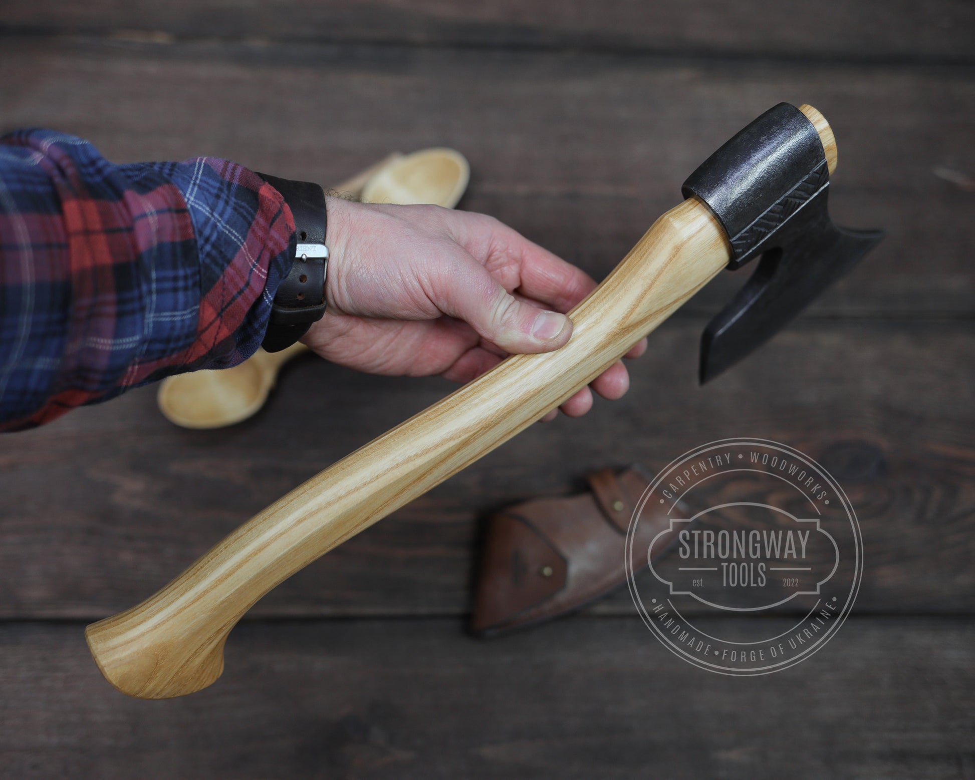 Großes Bildhauerbeil, Handgeschmiedet, Stiel mit Oktagonalprofil