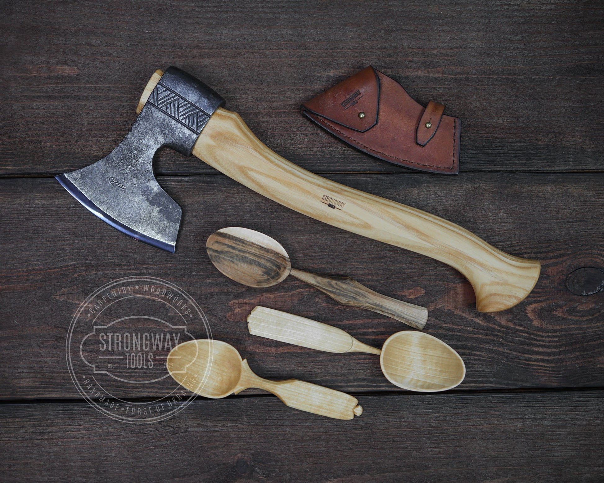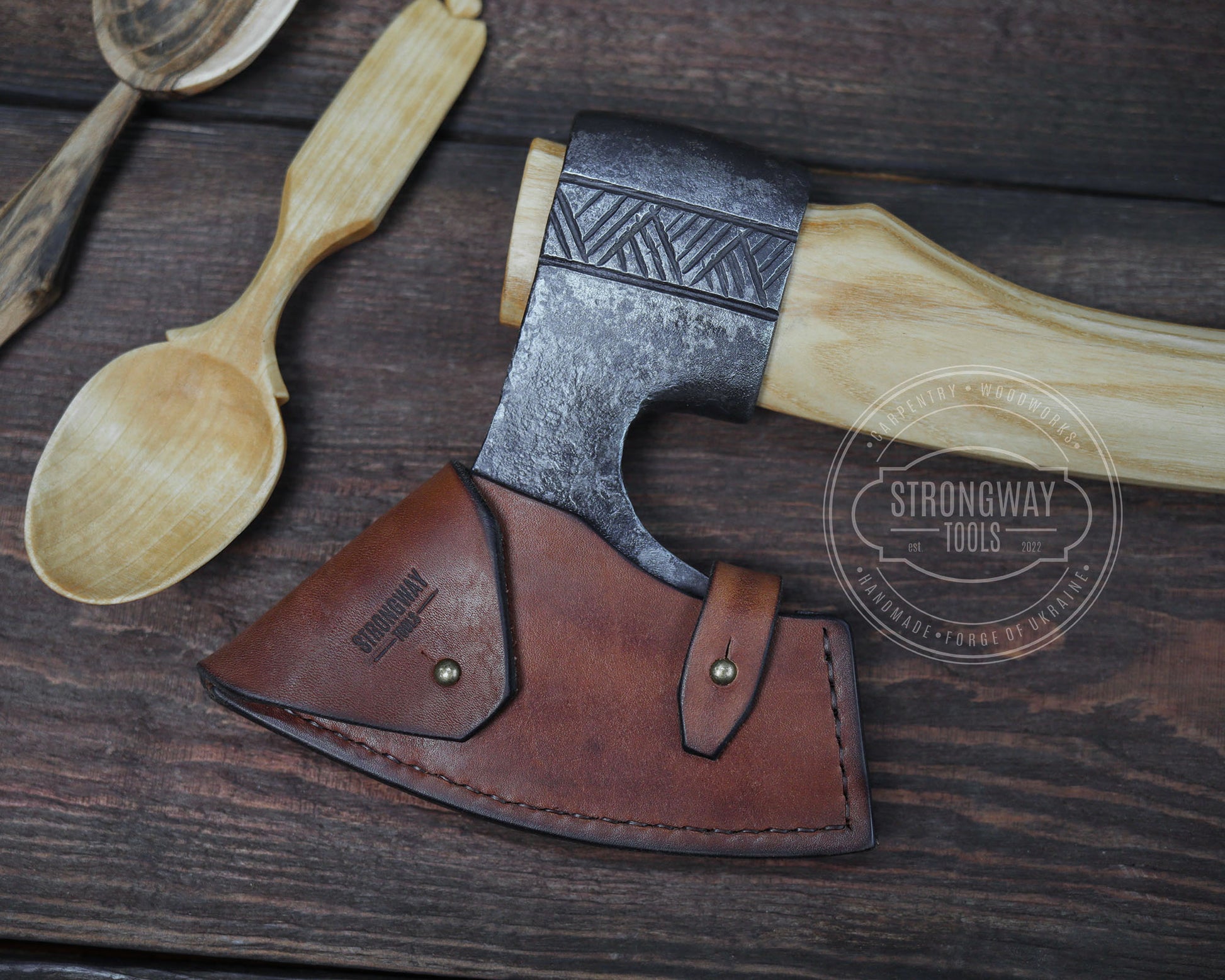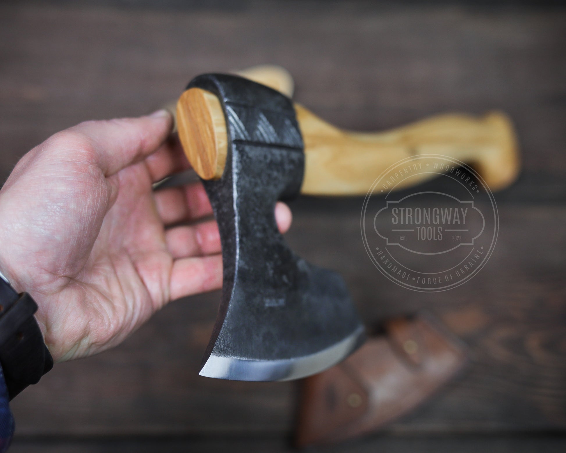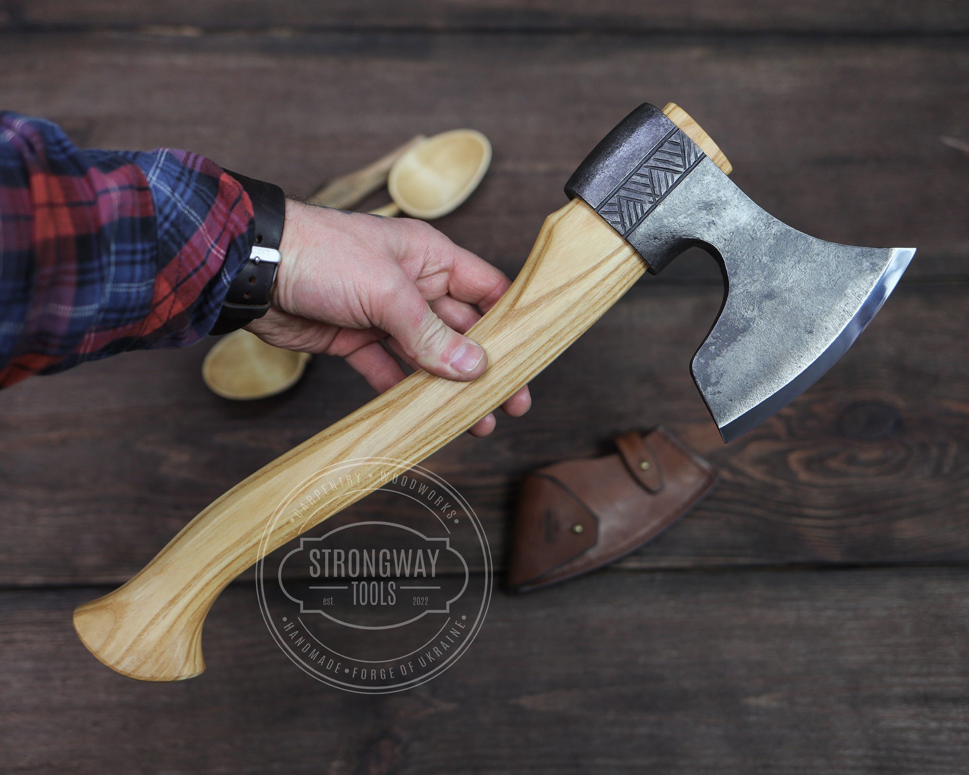 Großes Bildhauerbeil, Handgeschmiedet, Stiel mit Oktagonalprofil