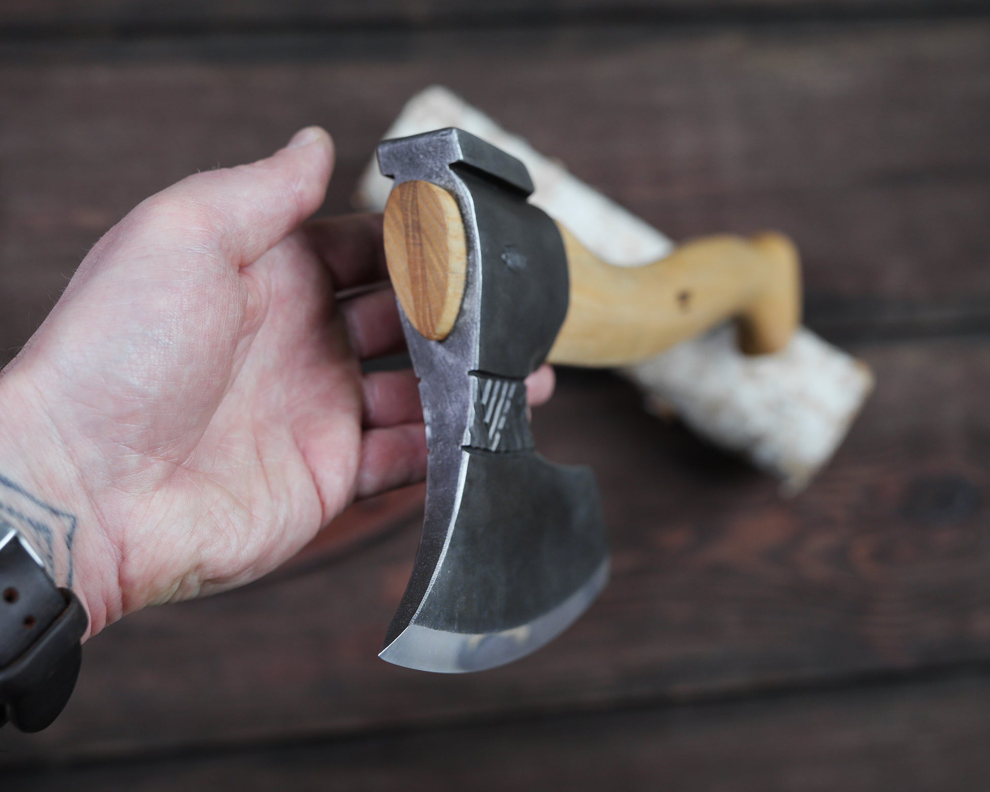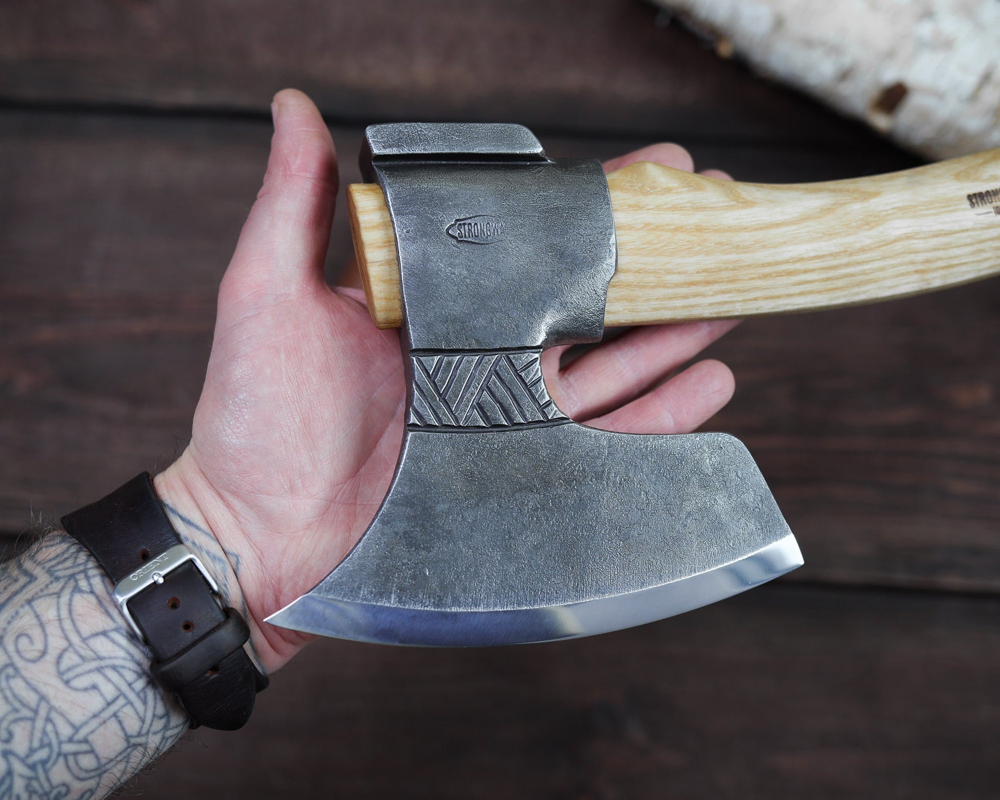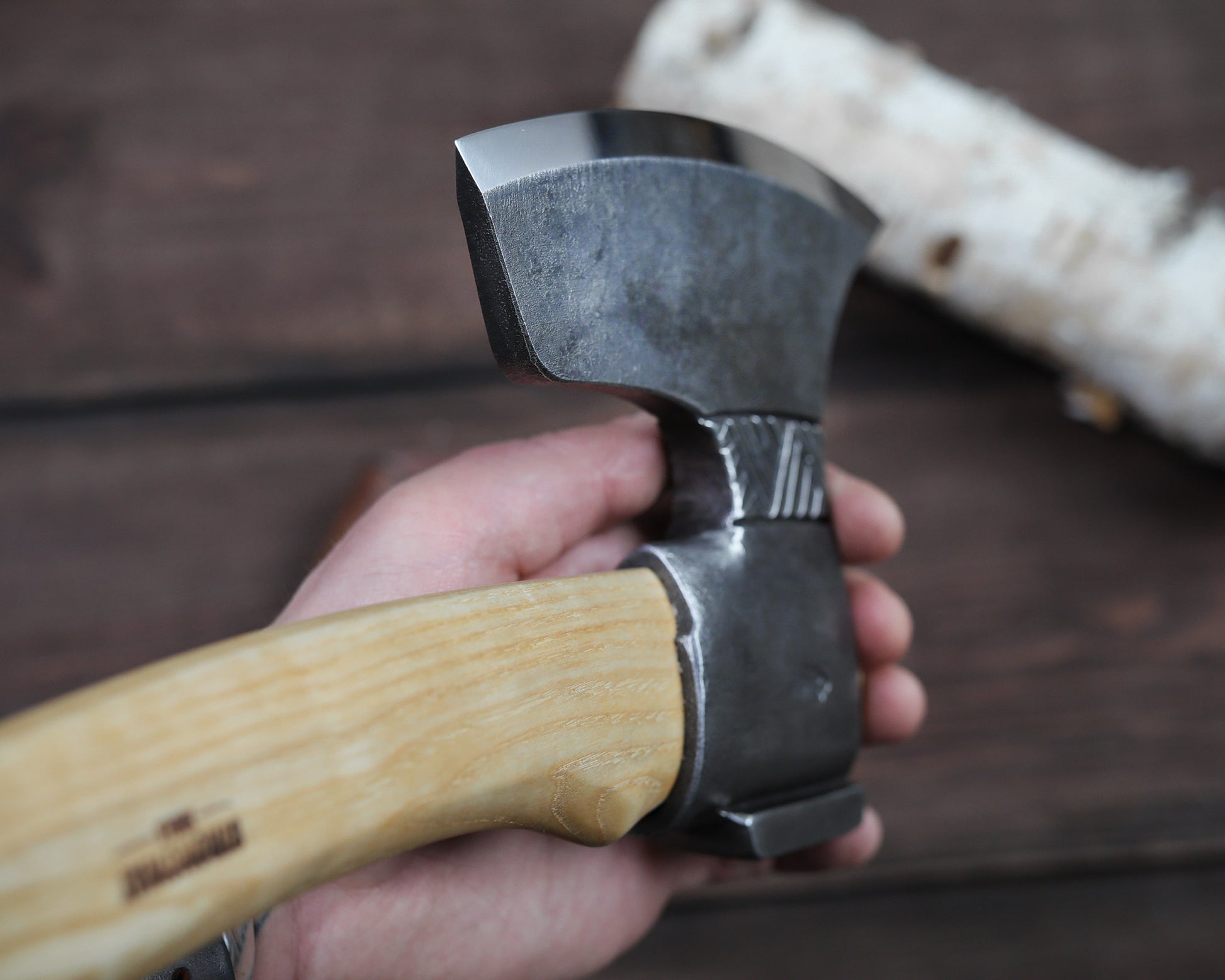Handgeschmiedetes Bildhauerbeil, Finnische Form, mit Oktagonalgriff