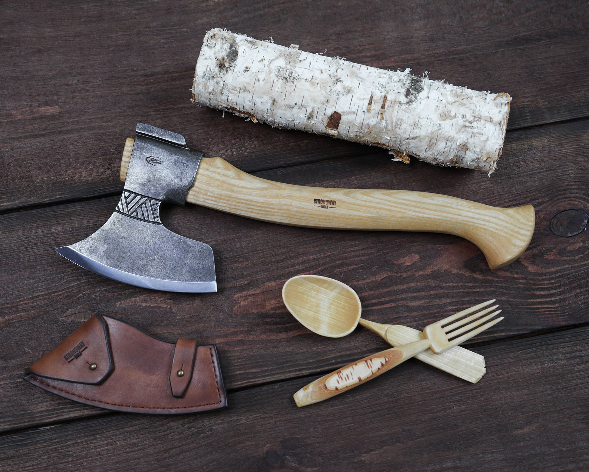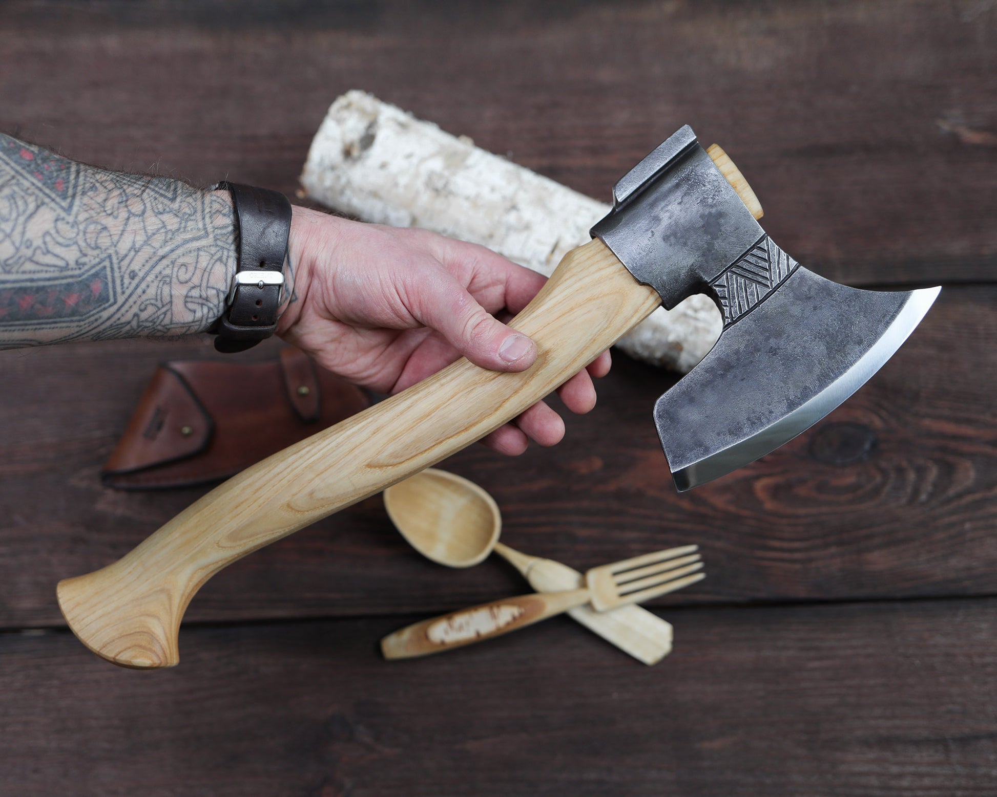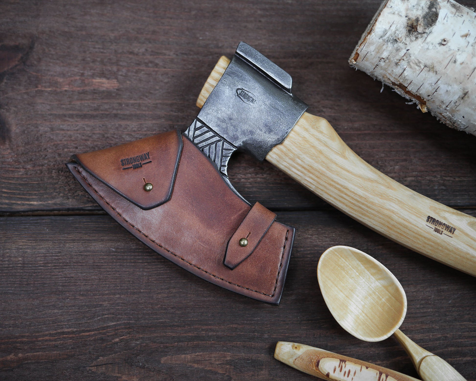 Handgeschmiedetes Bildhauerbeil, Finnische Form, mit Oktagonalgriff