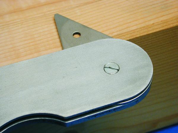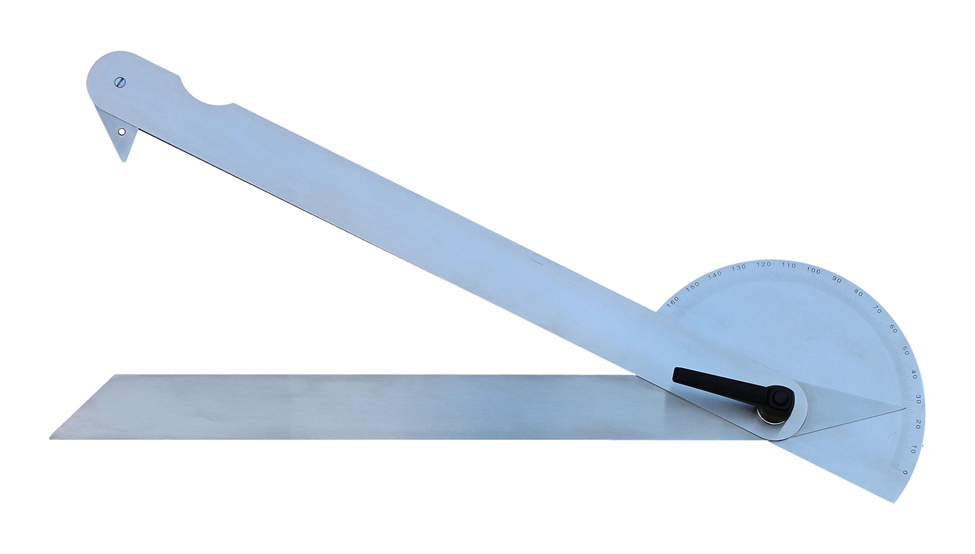 Eine große und schwere Schmiege, robust und widerstandsfähig verarbeitet. Der Gradbogen ist mit einer dauerhaft geätzten Gradskala versehen. Dank des großzügigen Teilungsabstandes sind auch halbe Grad stets gut einstell- und ablesbar. Mit dem großen Klemmhebel lässt sich der Messschenkel in jeder Position einfach und dennoch effektiv feststellen. Eine zweite Auflage ist bei Bedarf ausklappbar und ermöglicht so einen sauberen Anschlag ohne großen Kraftaufwand.