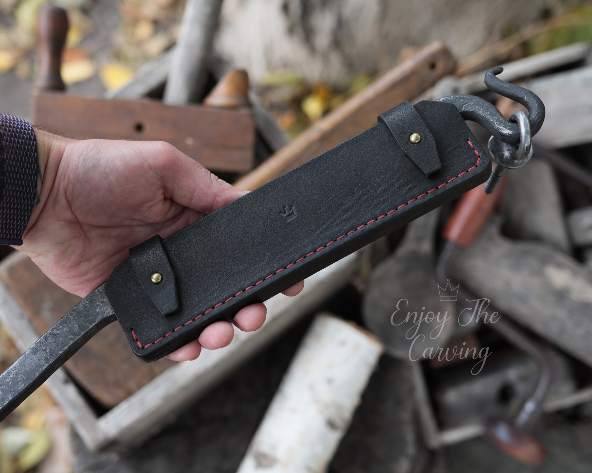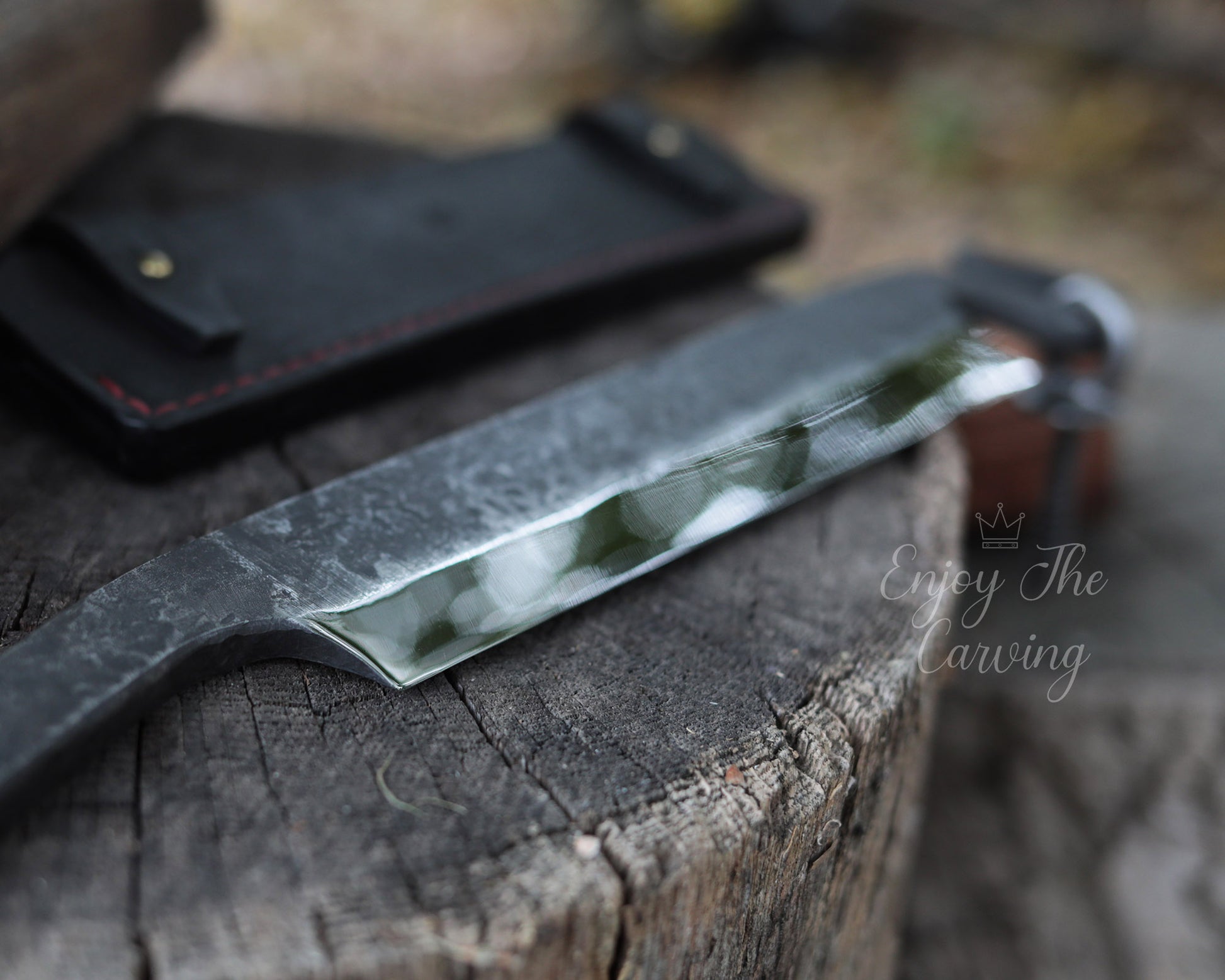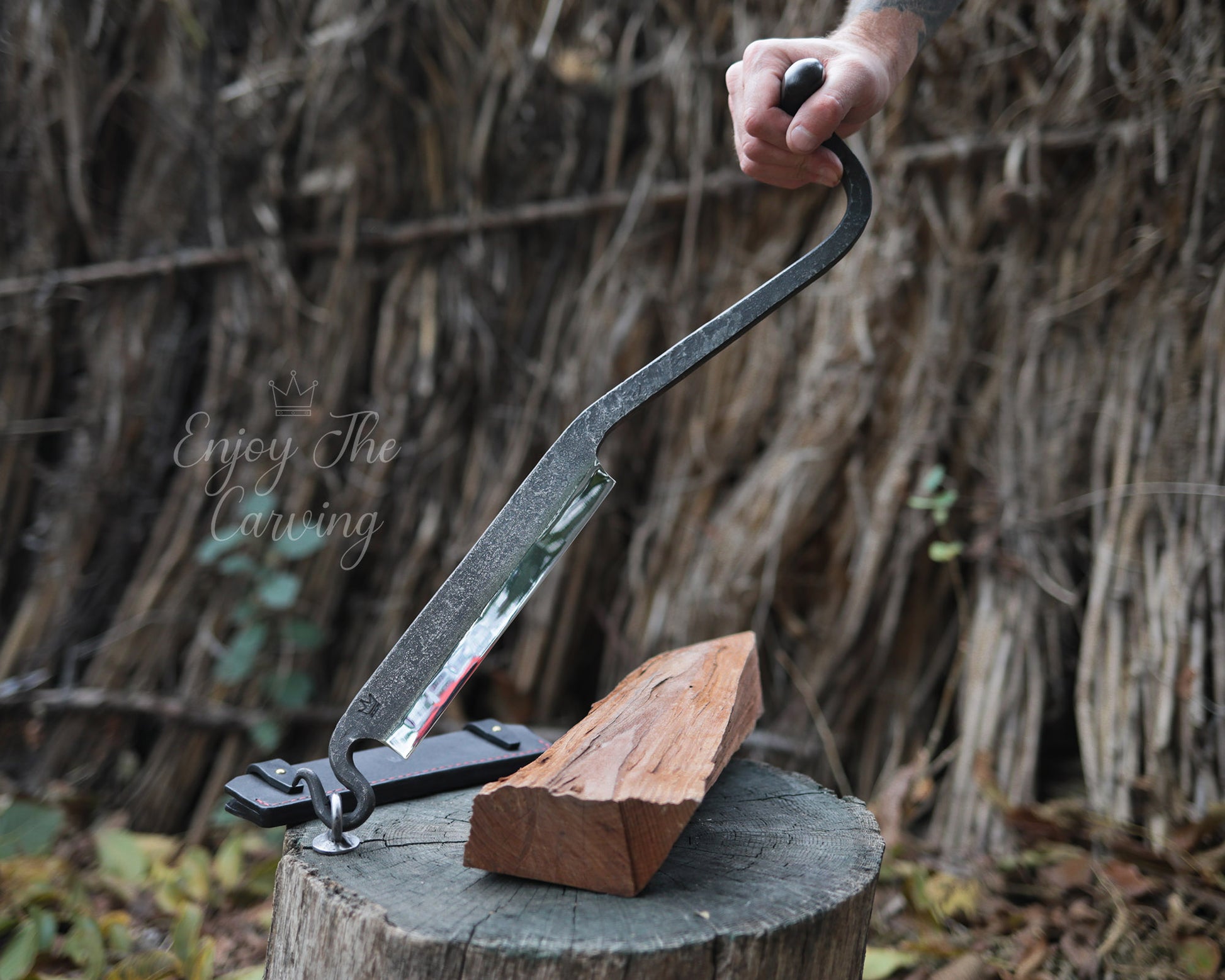 Stockmesser zur Holzbearbeitung, BLACK EDITION von Hand geschmiedet, mit hochwertiger Lederscheide.