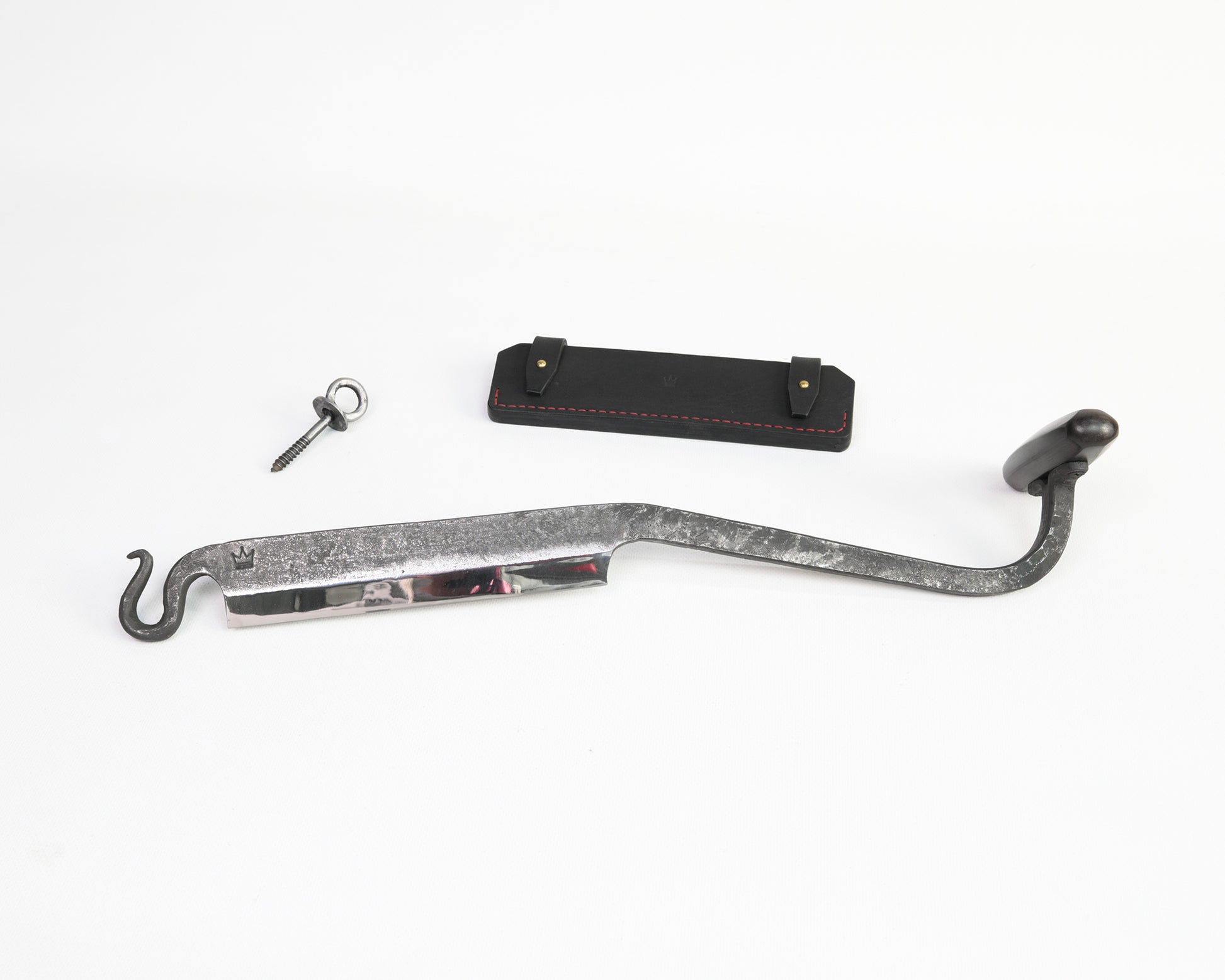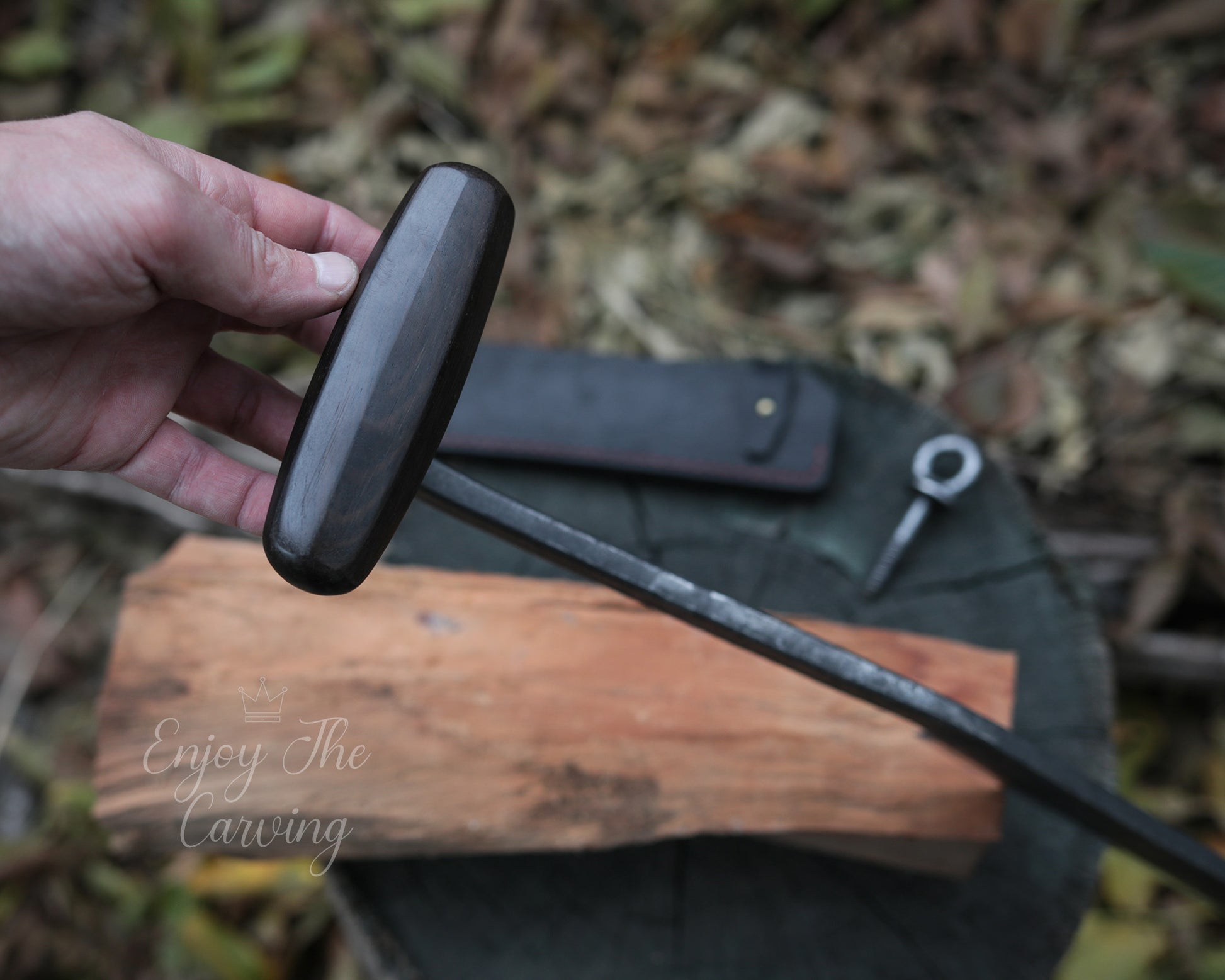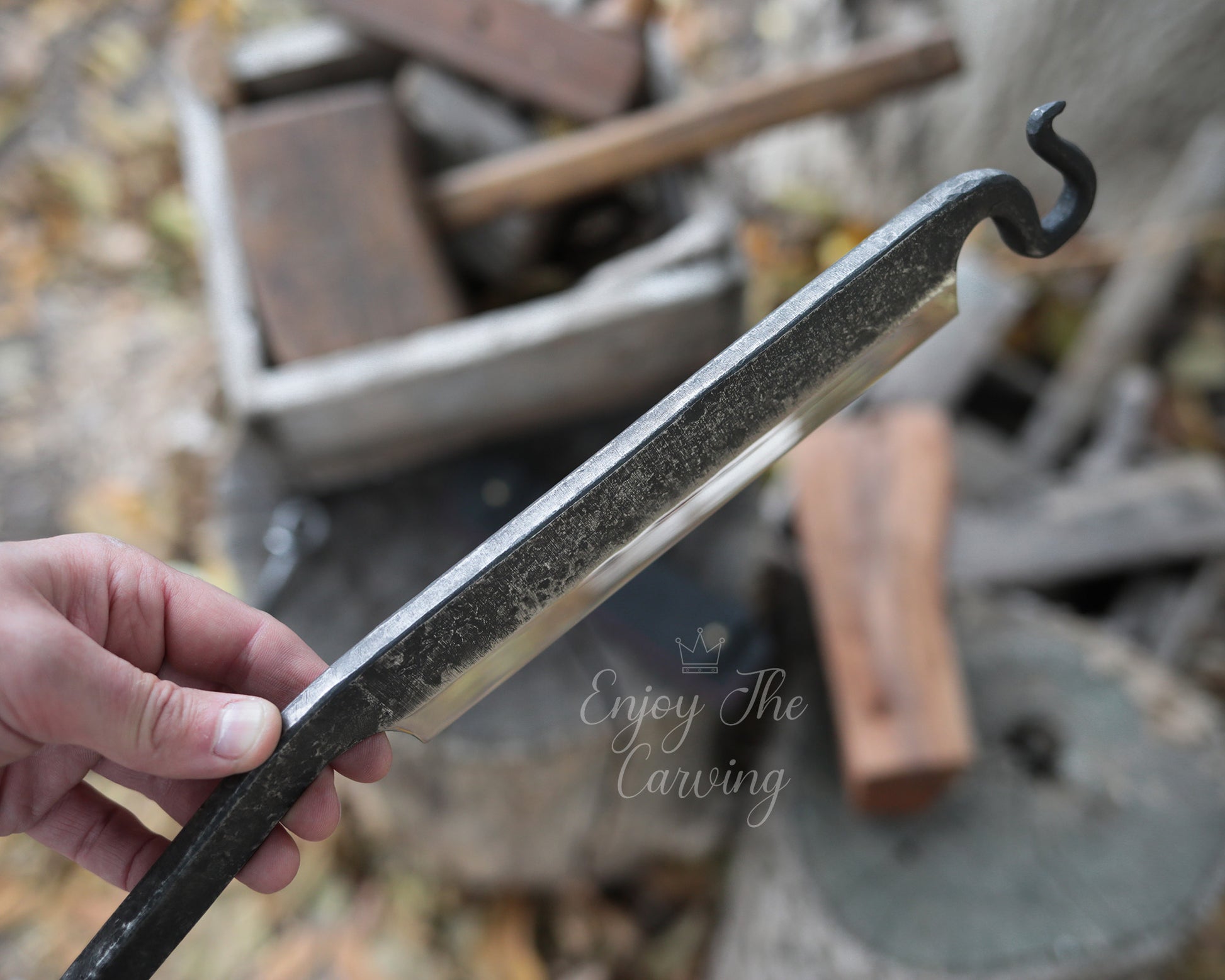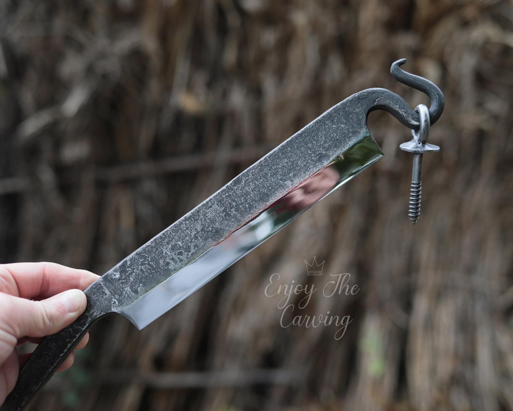 Stockmesser zur Holzbearbeitung, BLACK EDITION von Hand geschmiedet, mit hochwertiger Lederscheide.
