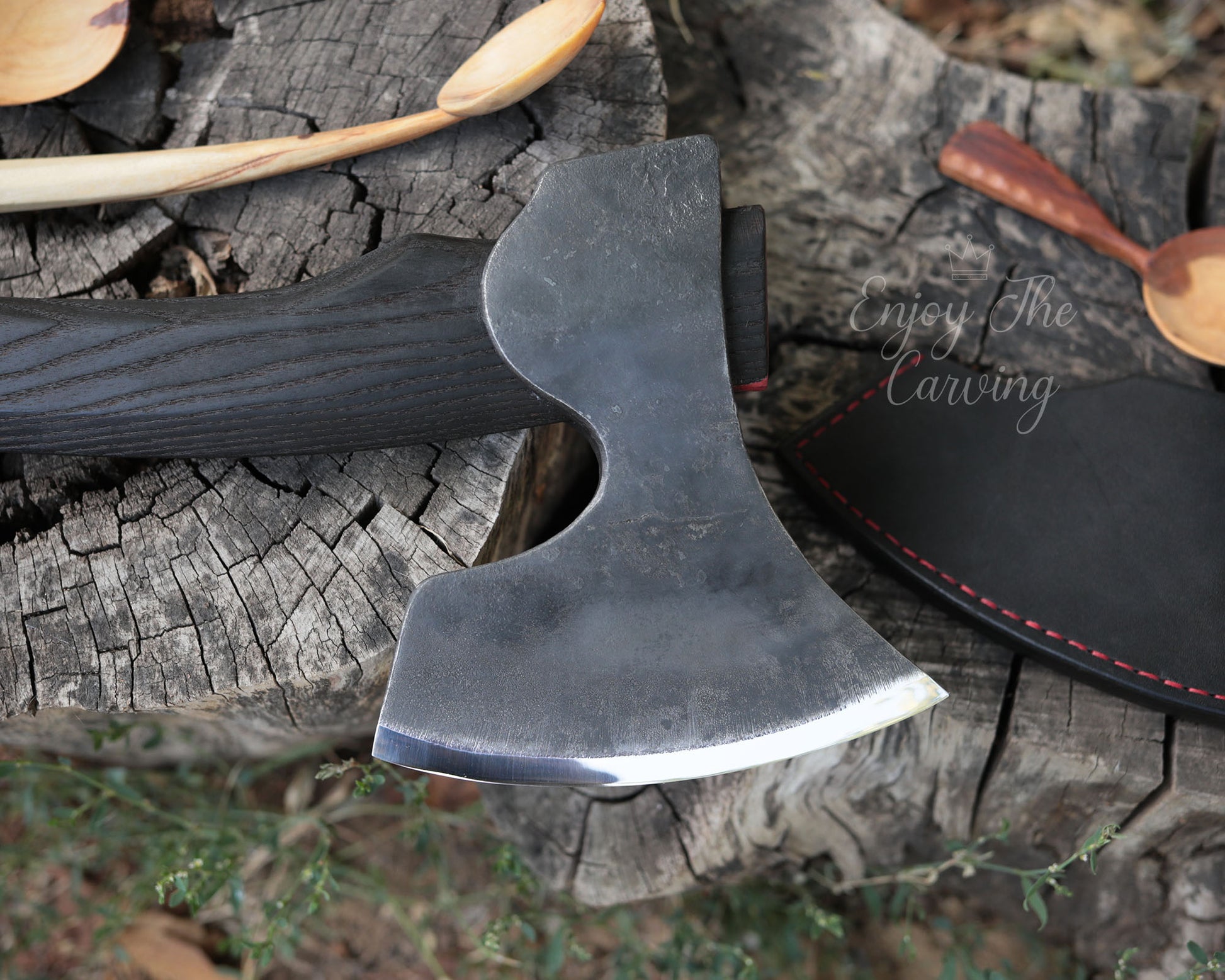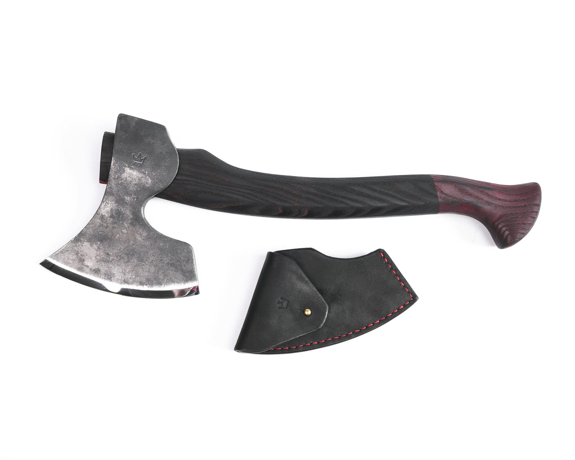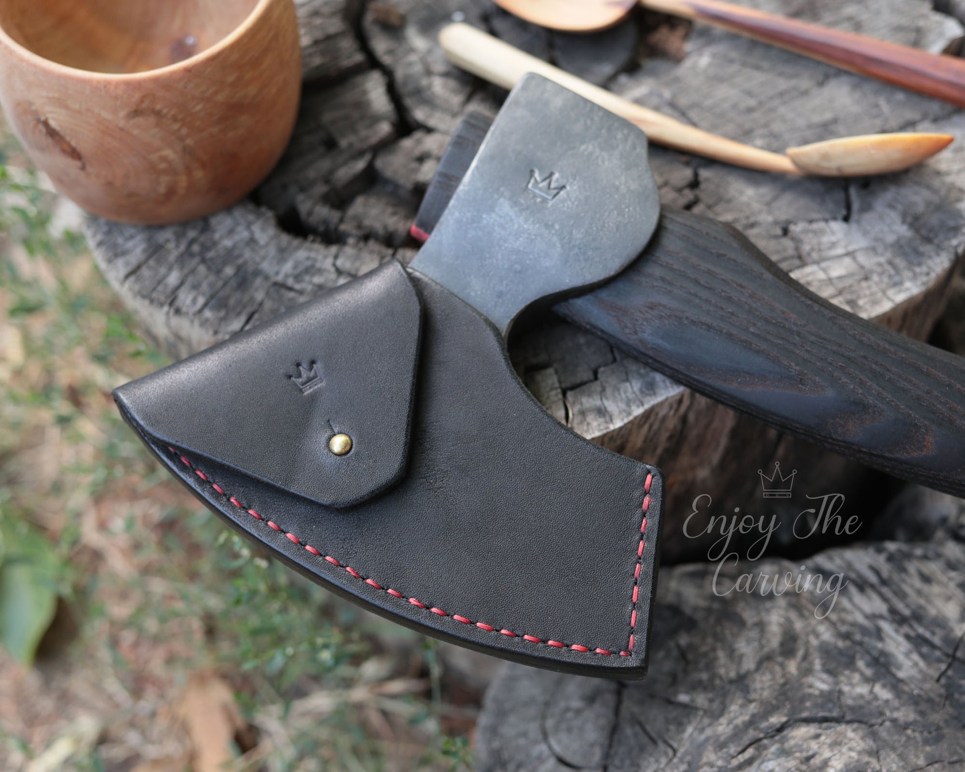 Bildhauerbeil, BLACK EDITION, von Hand geschmiedet, mit hochwertiger Lederscheide.