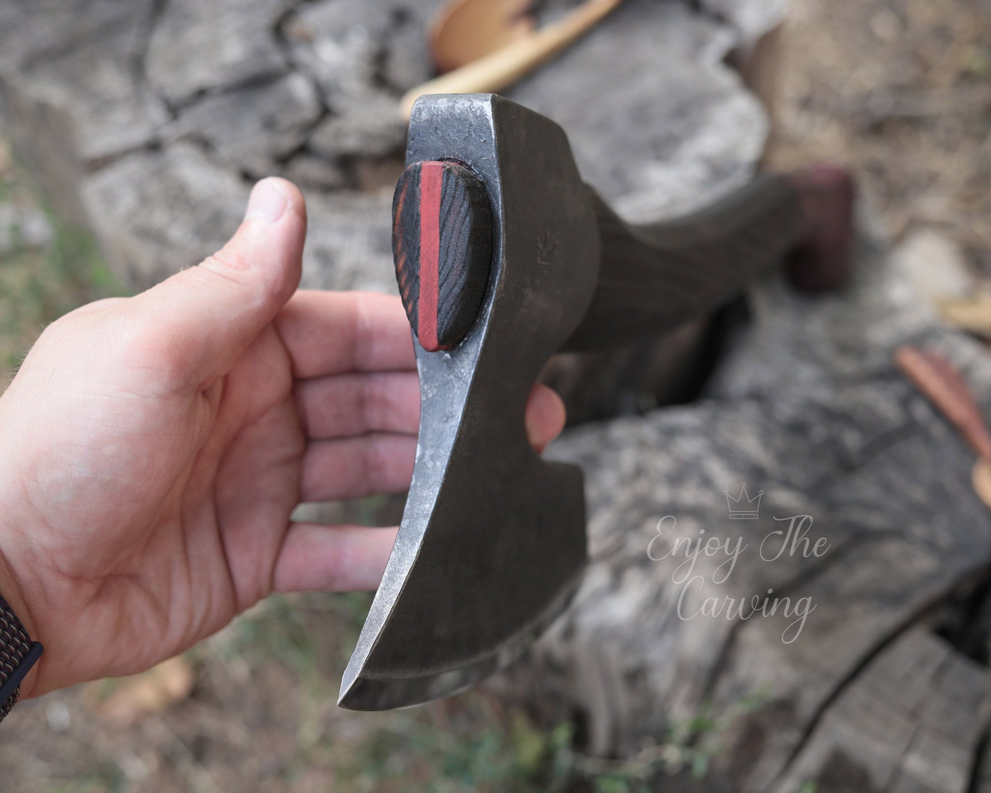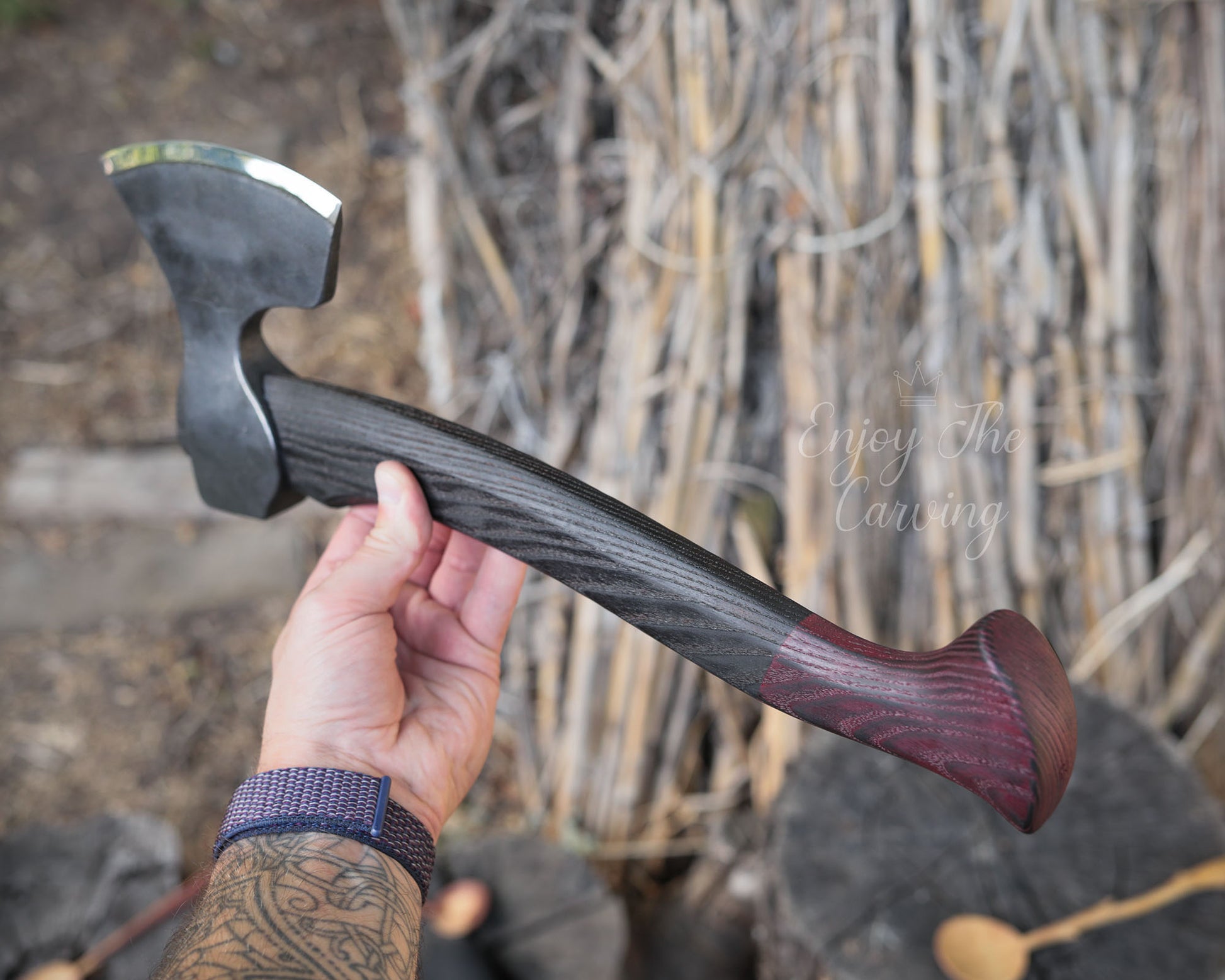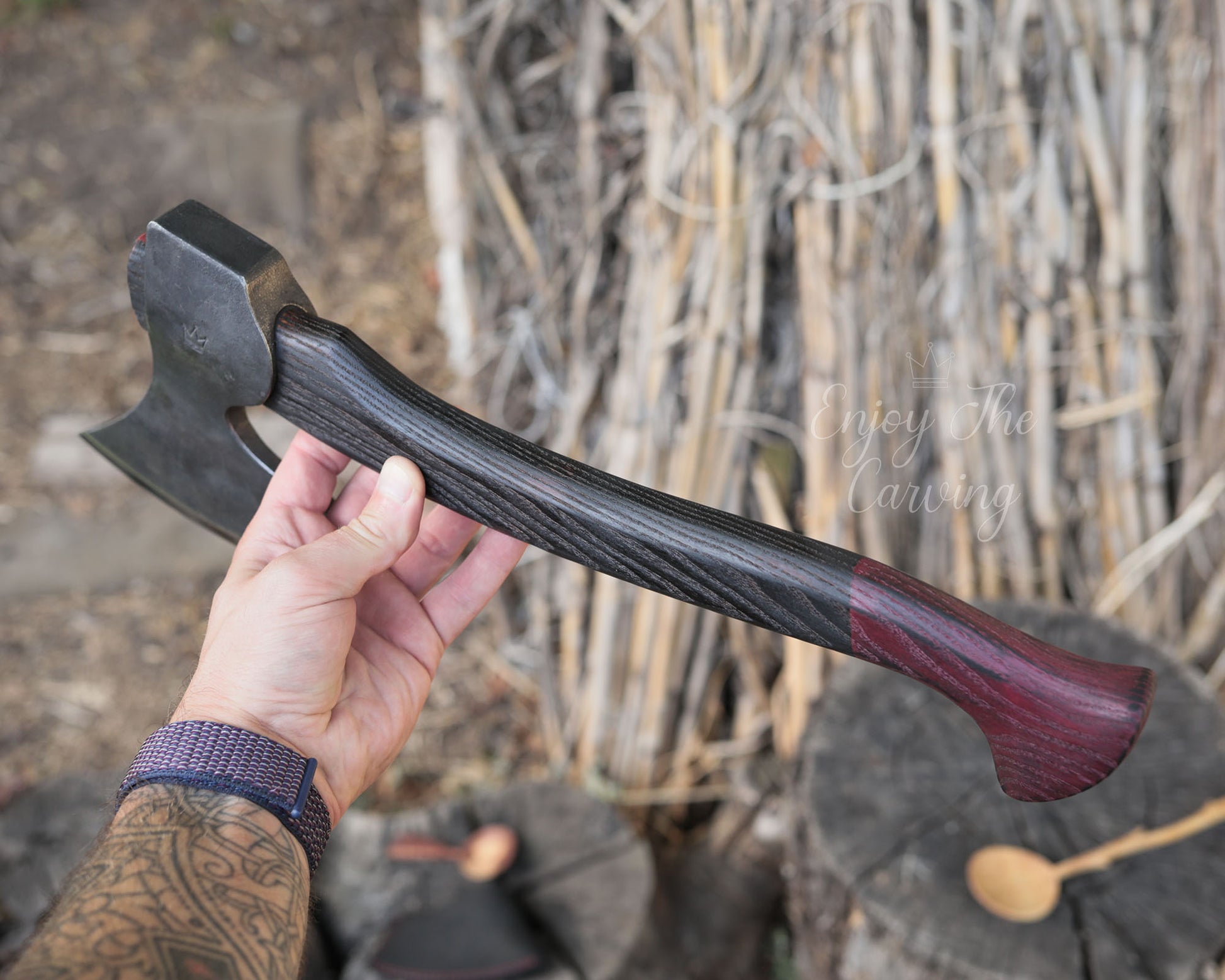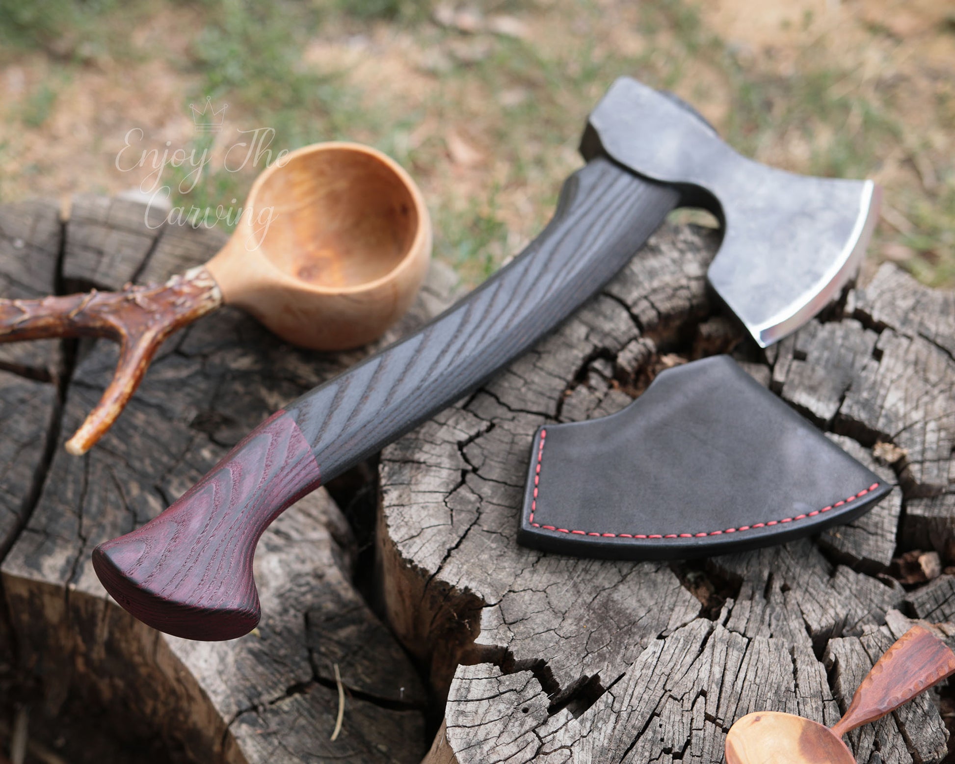 Bildhauerbeil, BLACK EDITION, von Hand geschmiedet, mit hochwertiger Lederscheide.