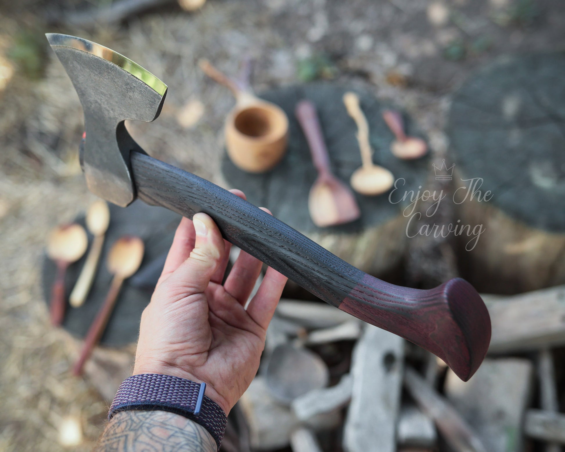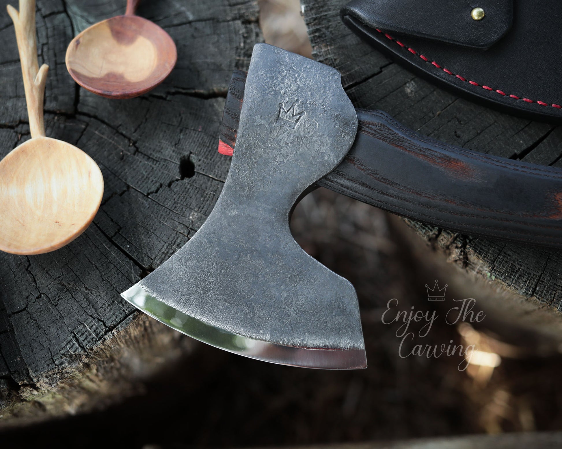 Mittelgroßes Schnitzbeil, BLACK EDITION, von Hand geschmiedet, mit hochwertiger Lederscheide.