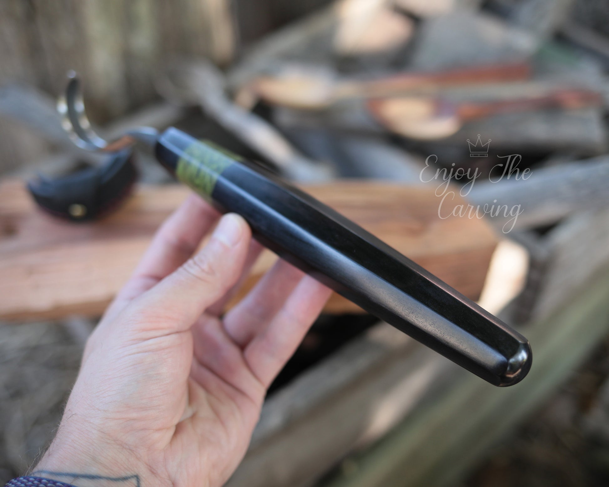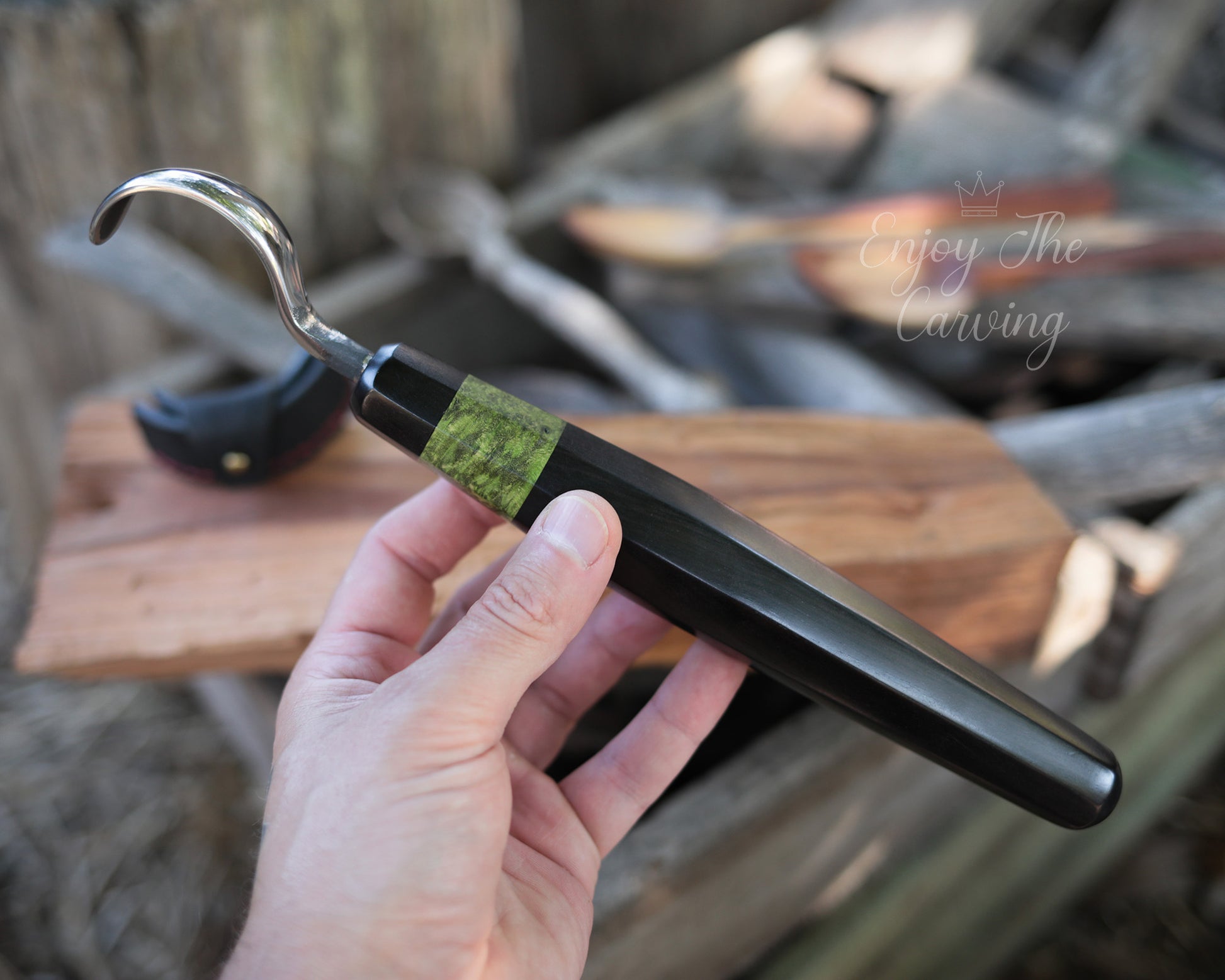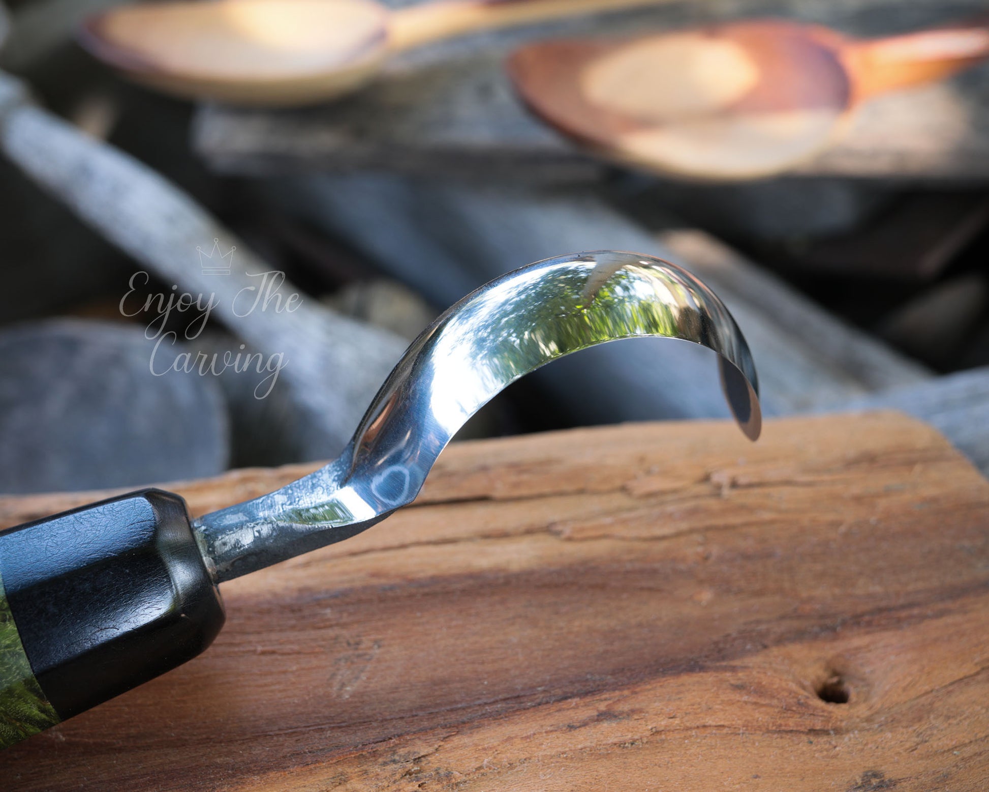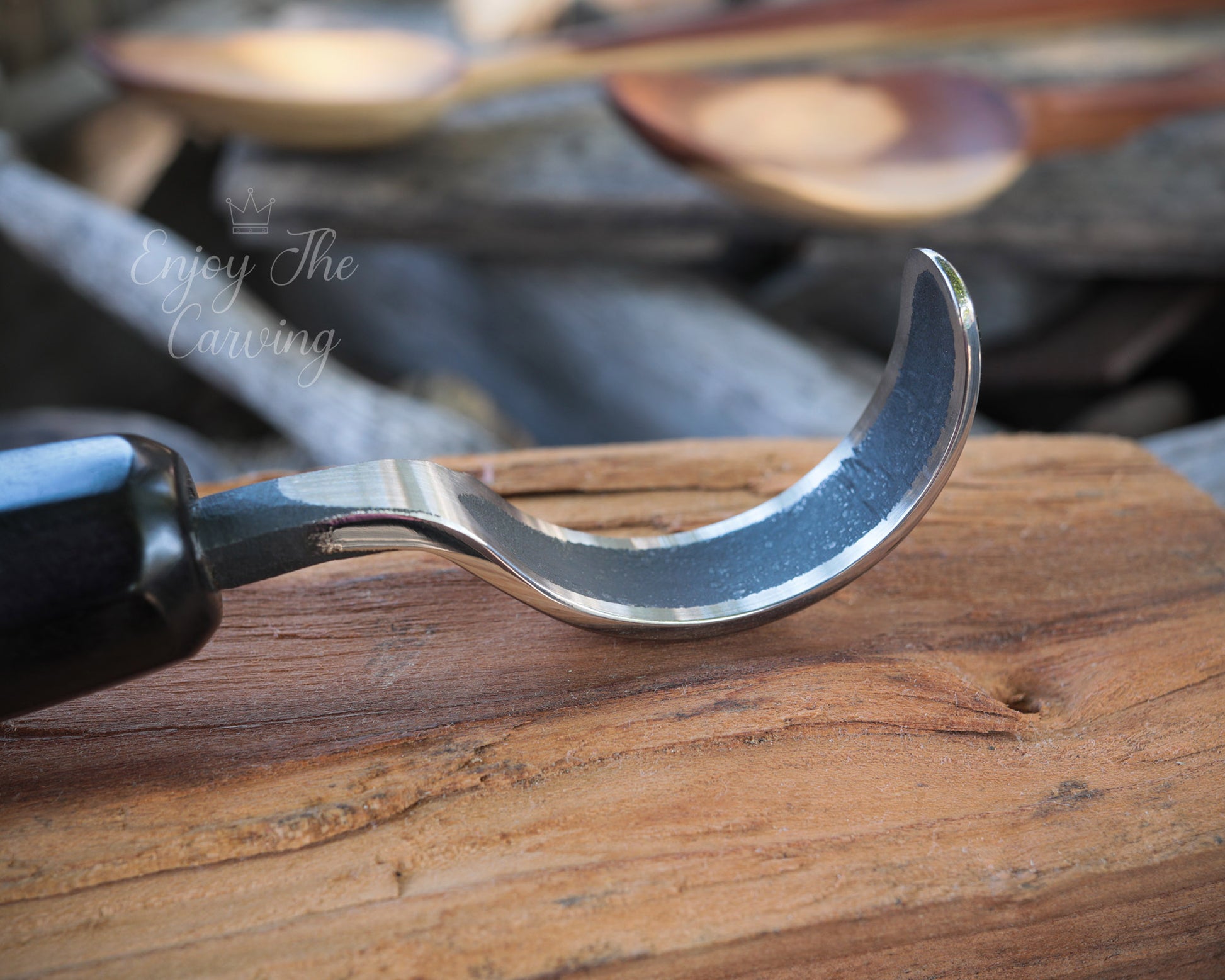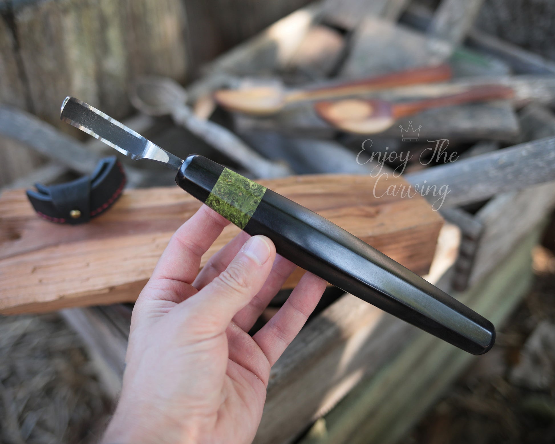 Löffel-und Schalen Schnitzmesser, langes Heft, BLACK EDITION, stark gekrümmt