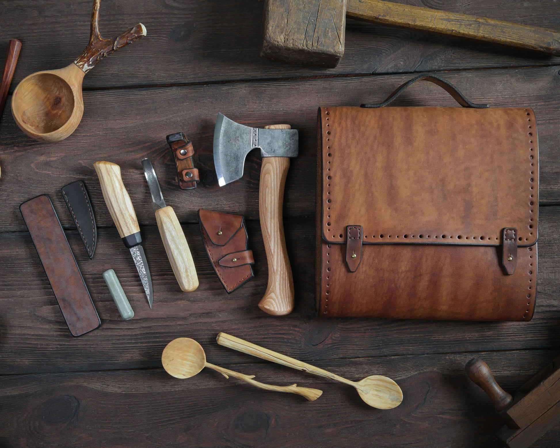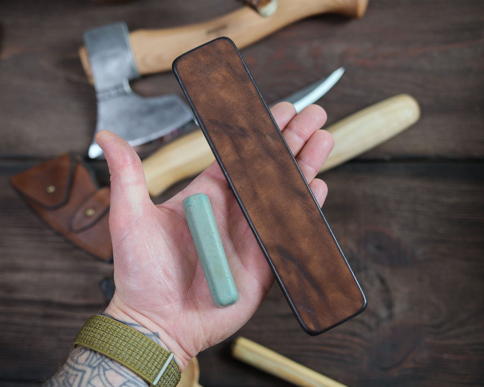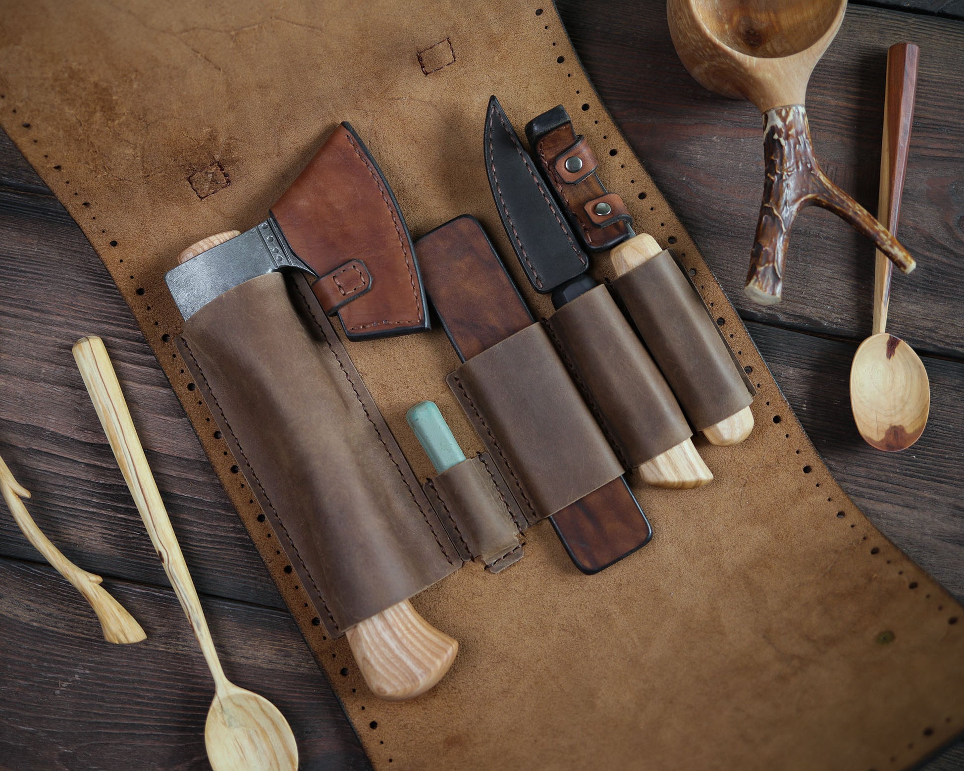 Großes Schnitzset, im Leder Organizer, mit Abziehriemen (inkl. Abziehpaste)