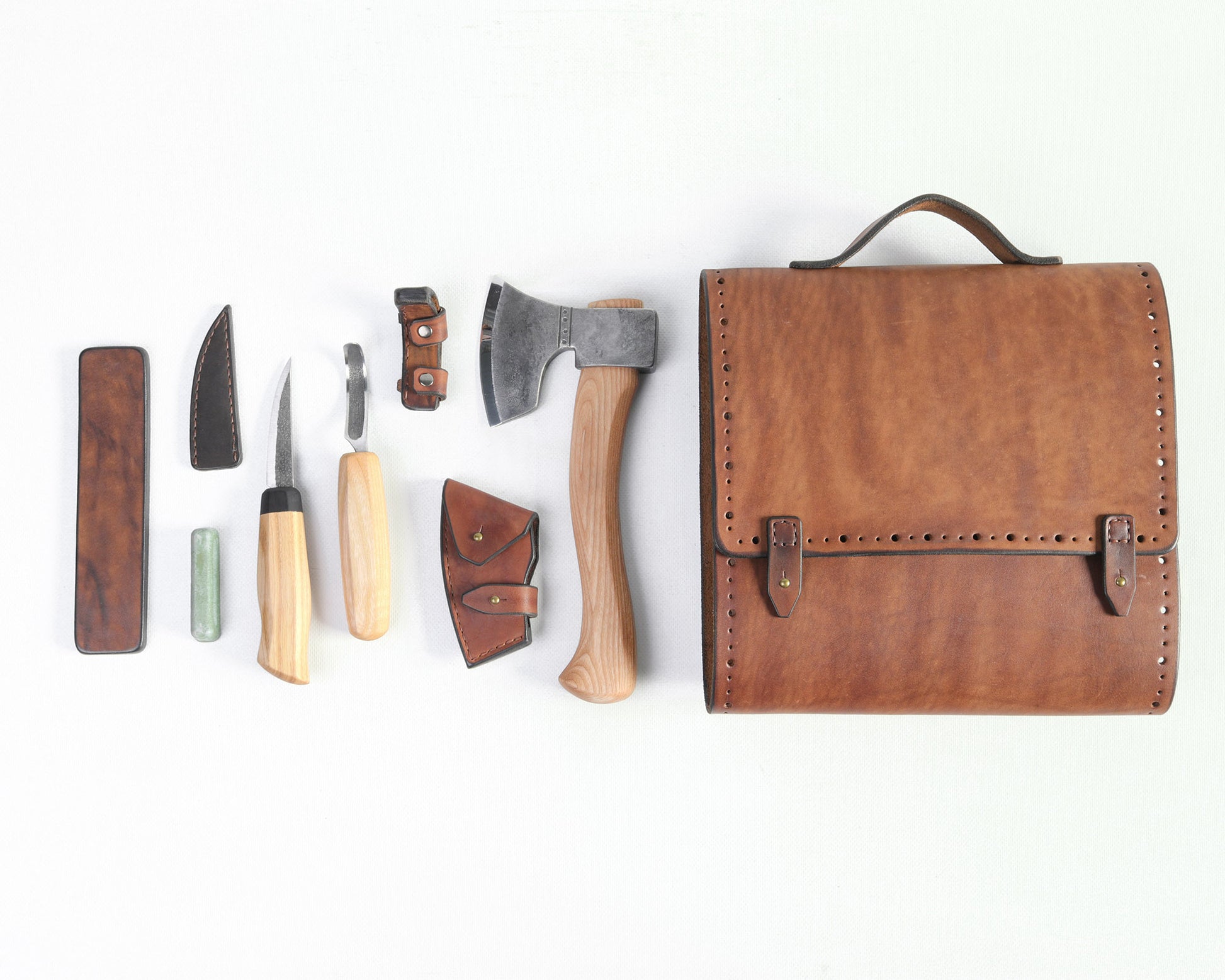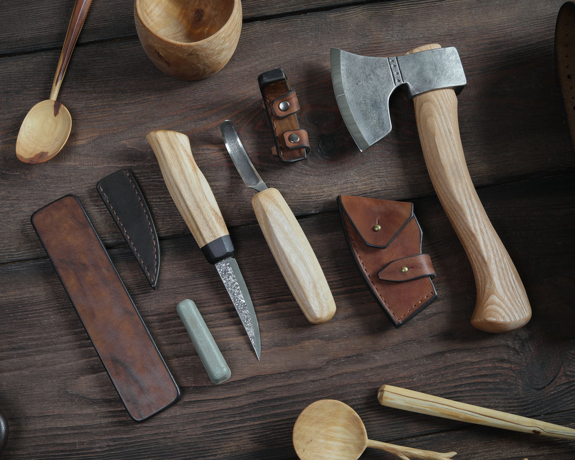Alle Schnitzwerkzeuge mit zusätzlicher Lederscheide