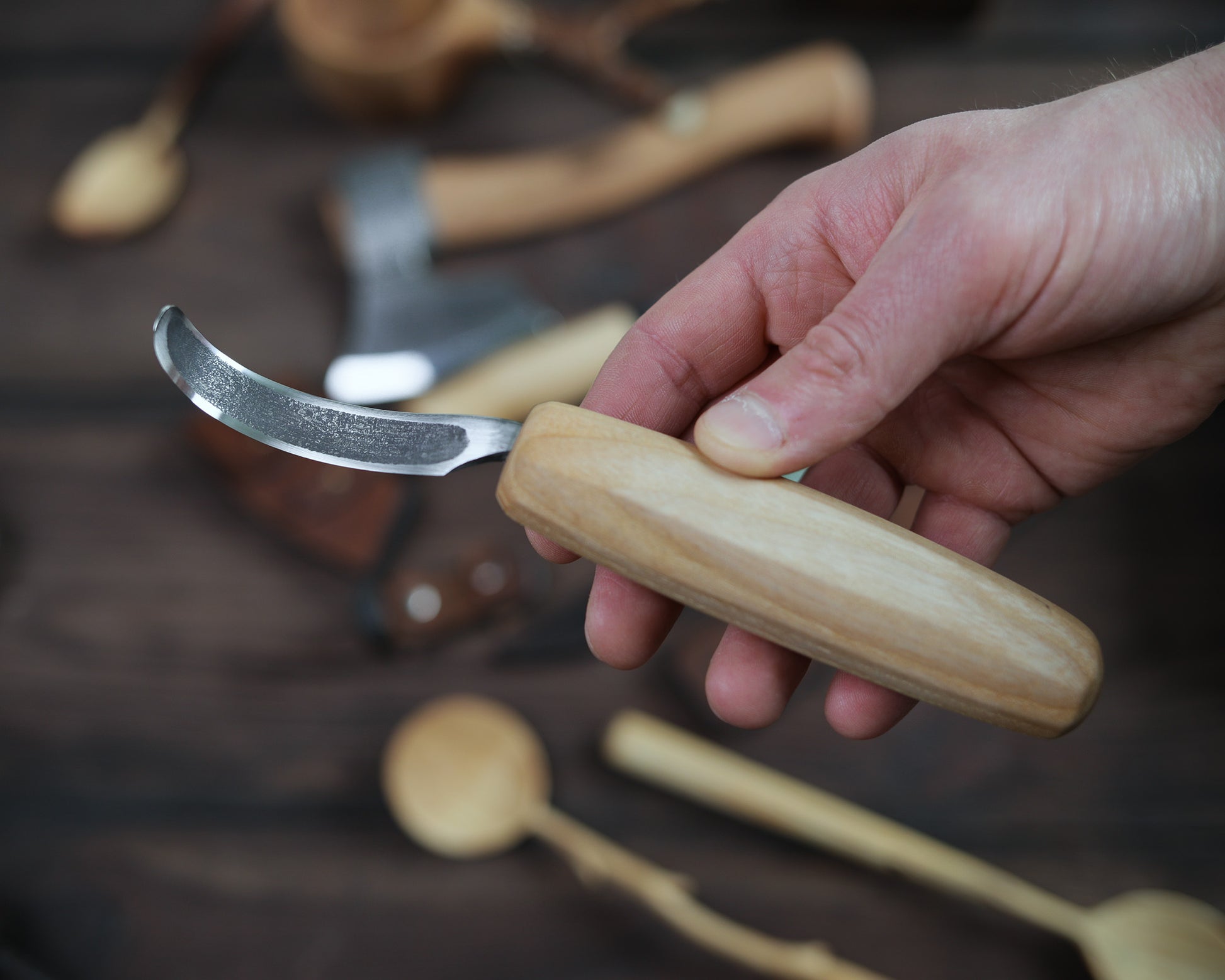 - Schnitzmesser: Klingenlänge 9 cm. Heftlänge 13 cm