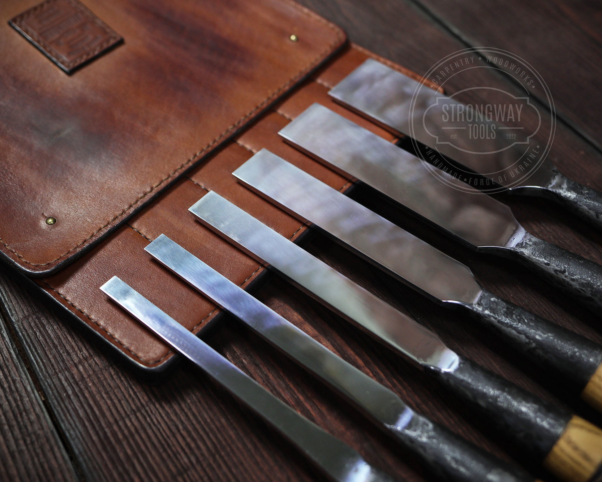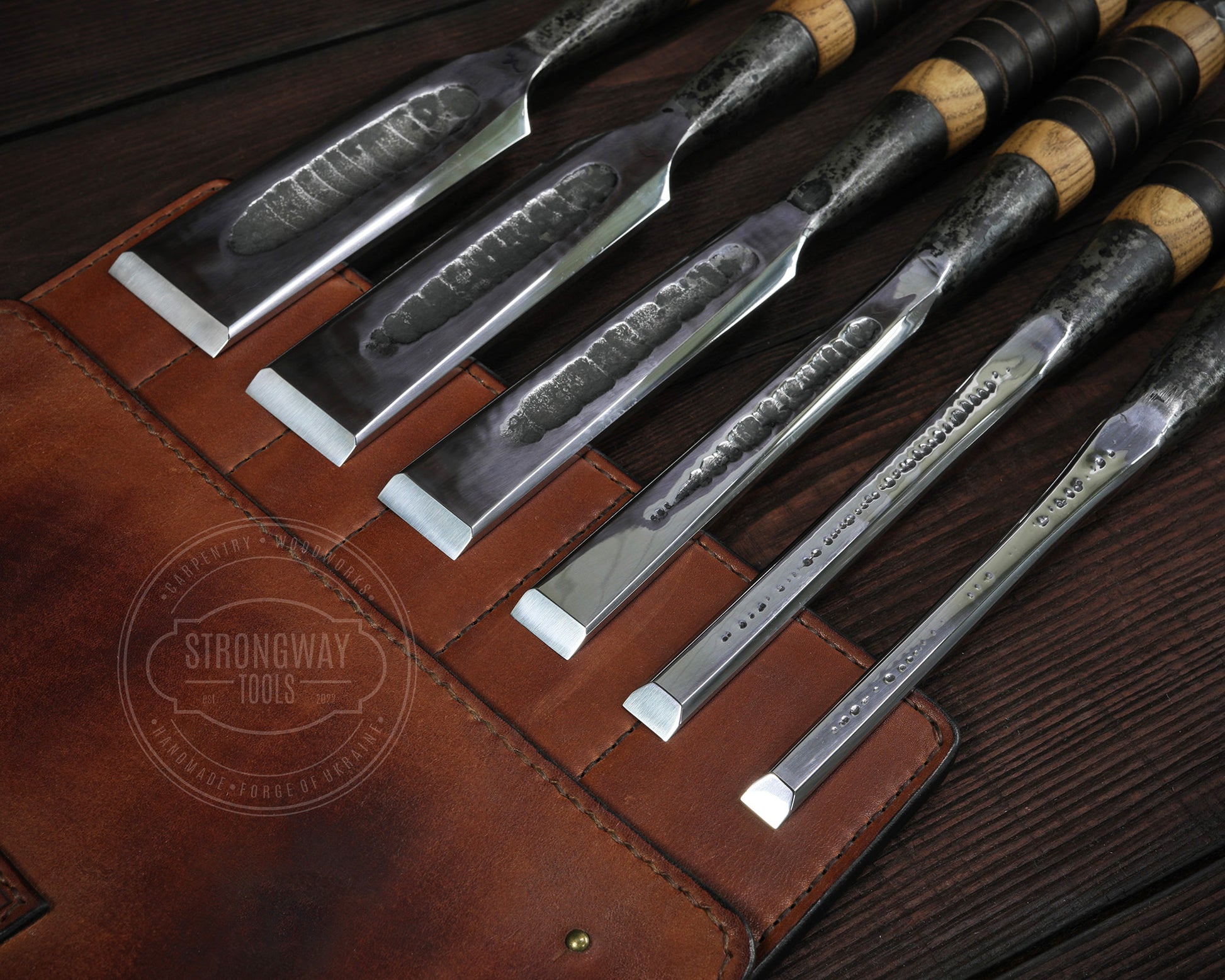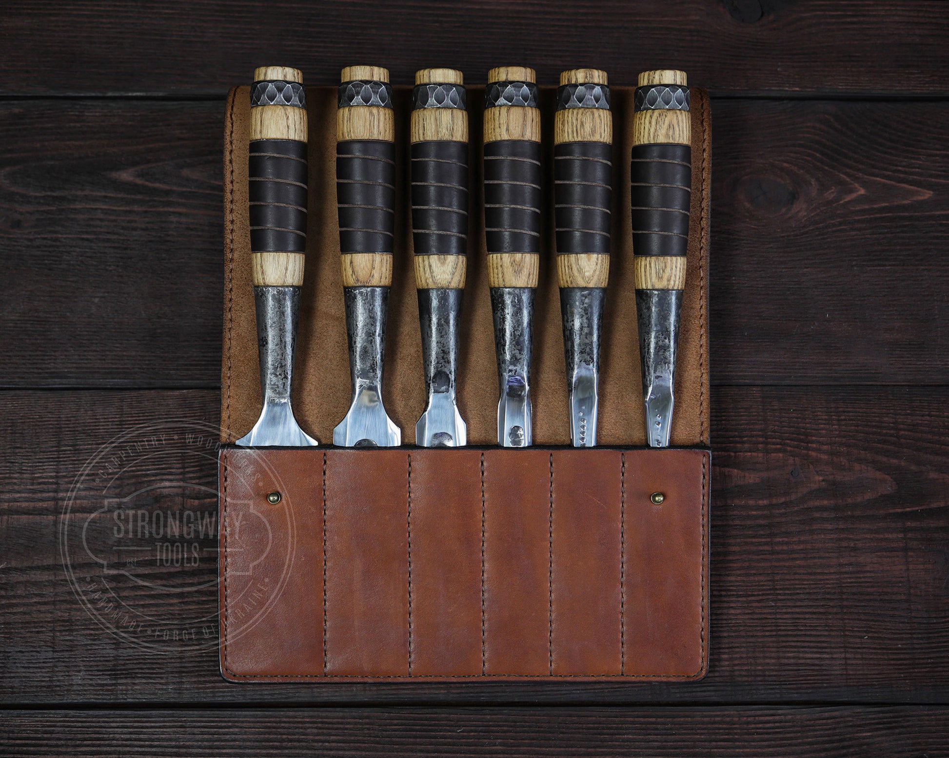 Mittlere Bauform, Hand geschmiedet, in Hochwertiger Ledertasche