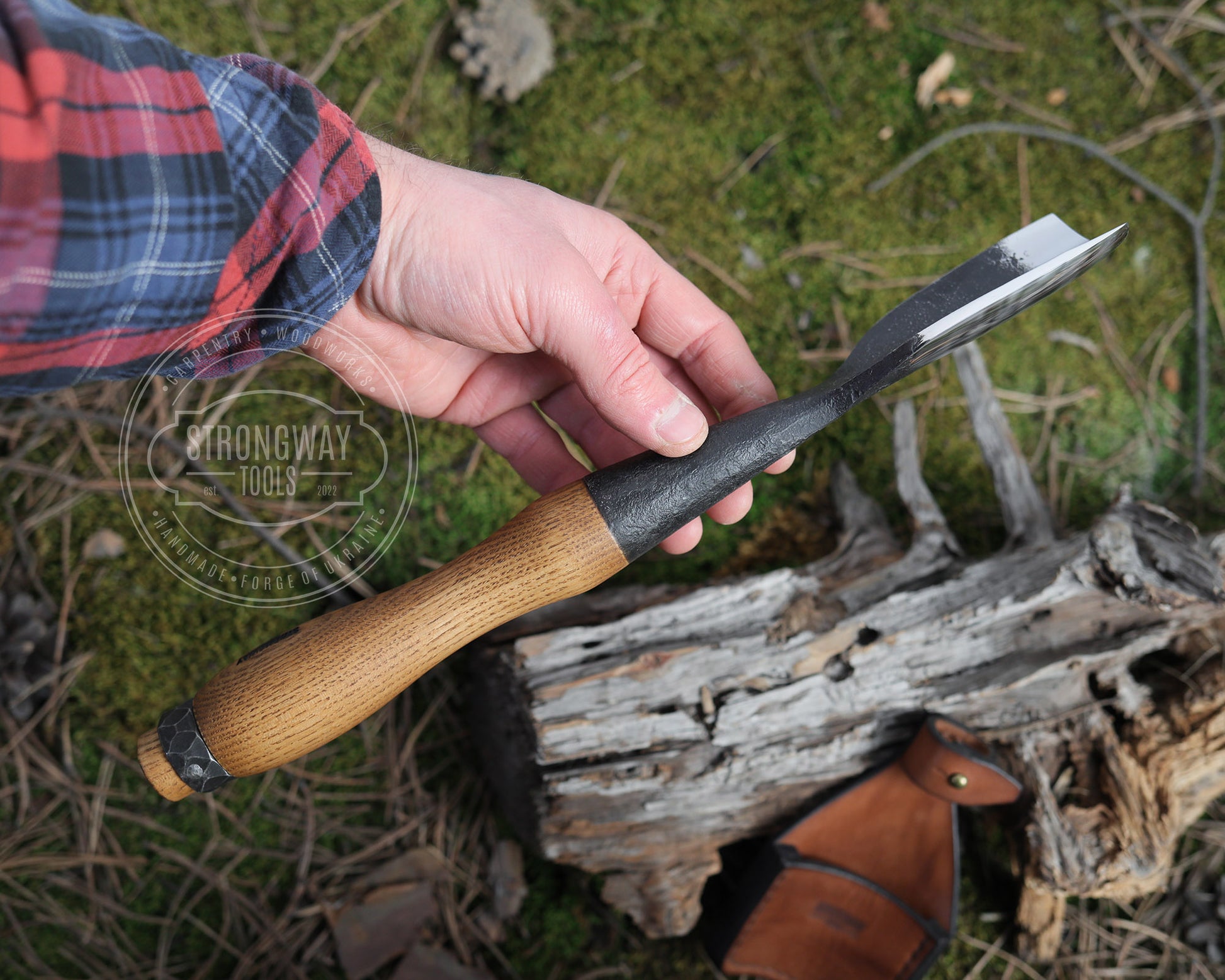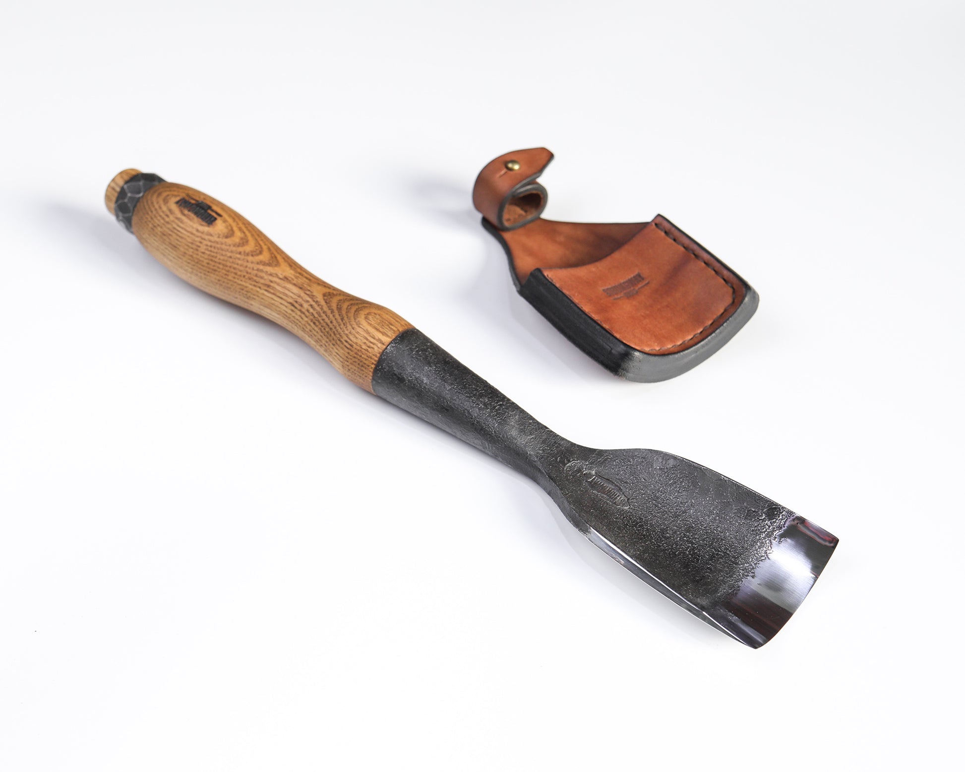 Großes Zimmerer- Hohleisen mit hochwertiger Lederscheide, Handgeschmiedet