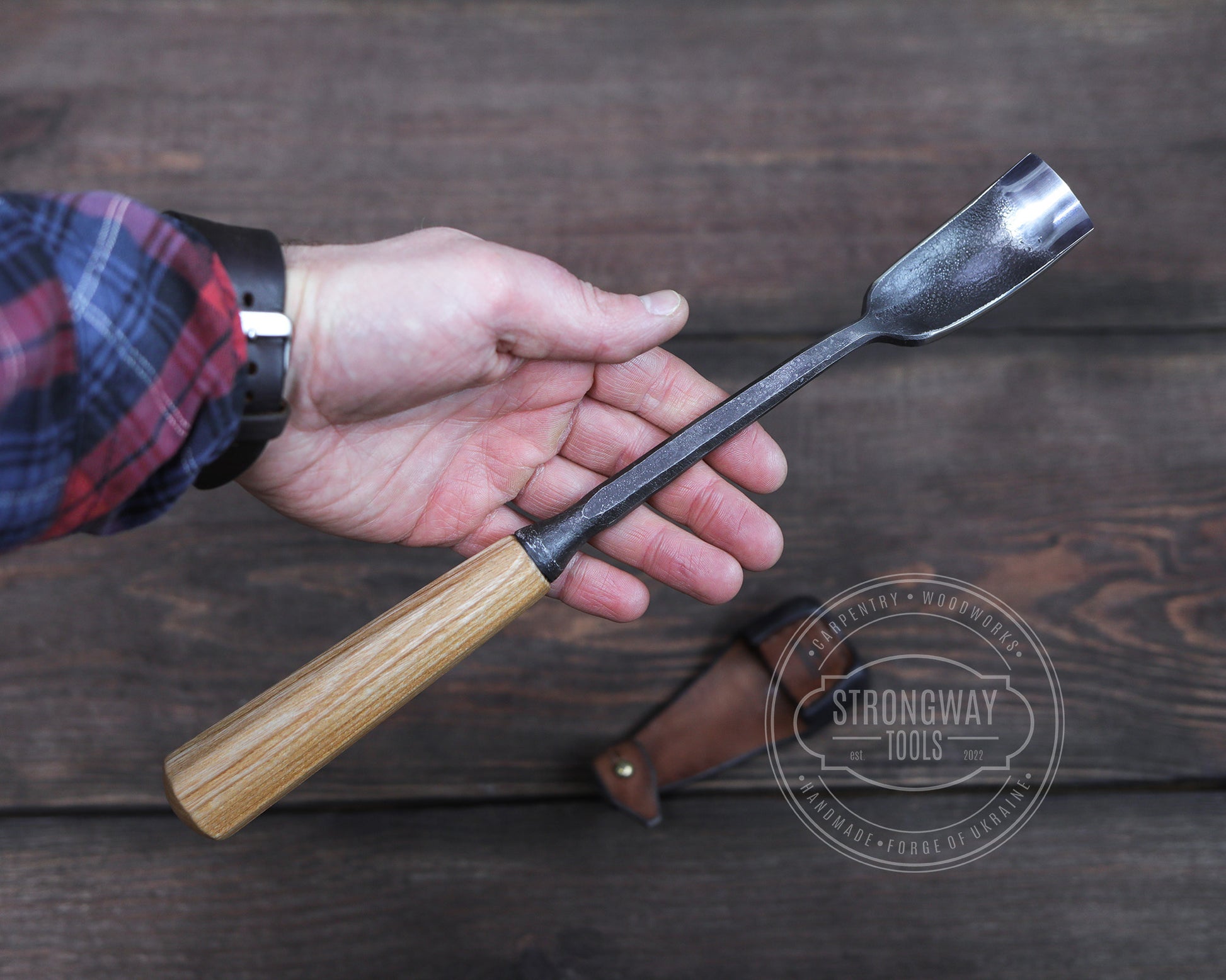 Hohleisen mit hochwertiger Lederscheide, Handgeschmiedet
